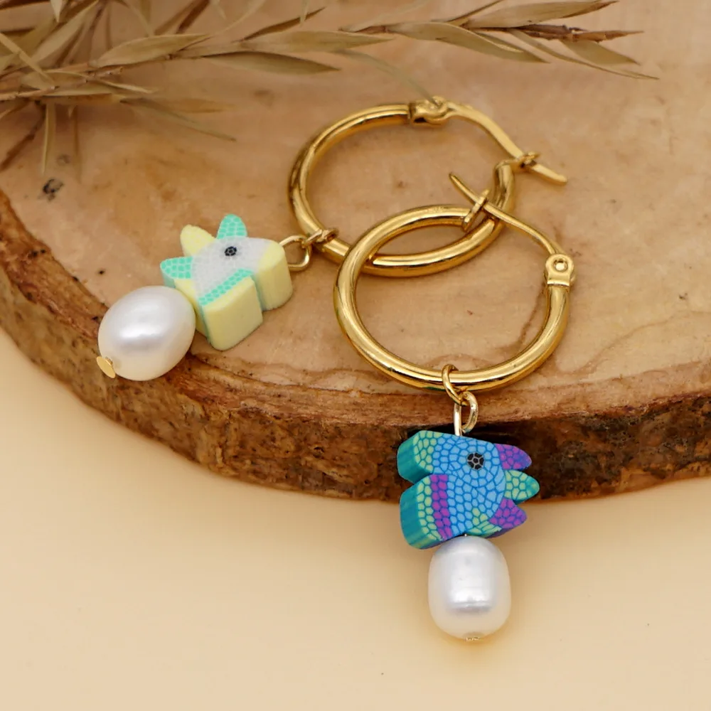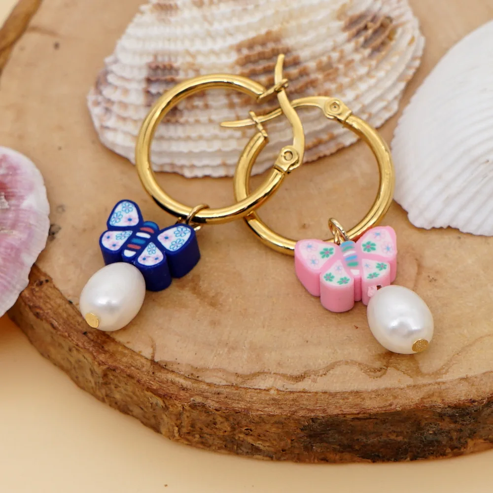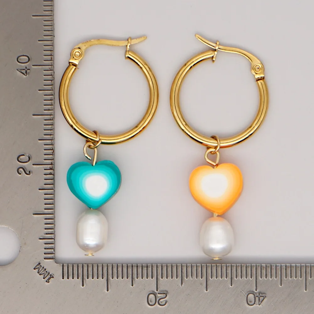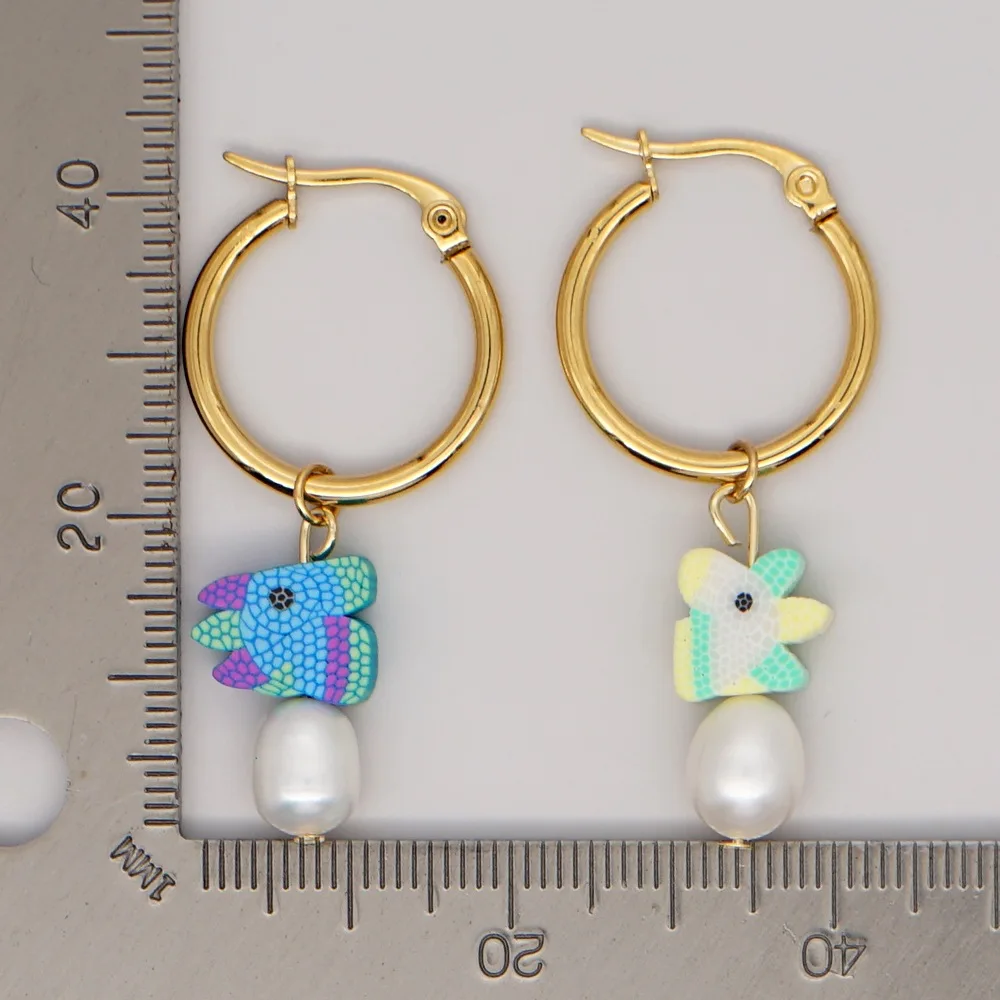 Модные милые цветные серьги-кольца BLIN с улыбкой, цветком, натуральным жемчугом и бусинами, висячие серьги-кольца, летние серьги из нержавеющей стали