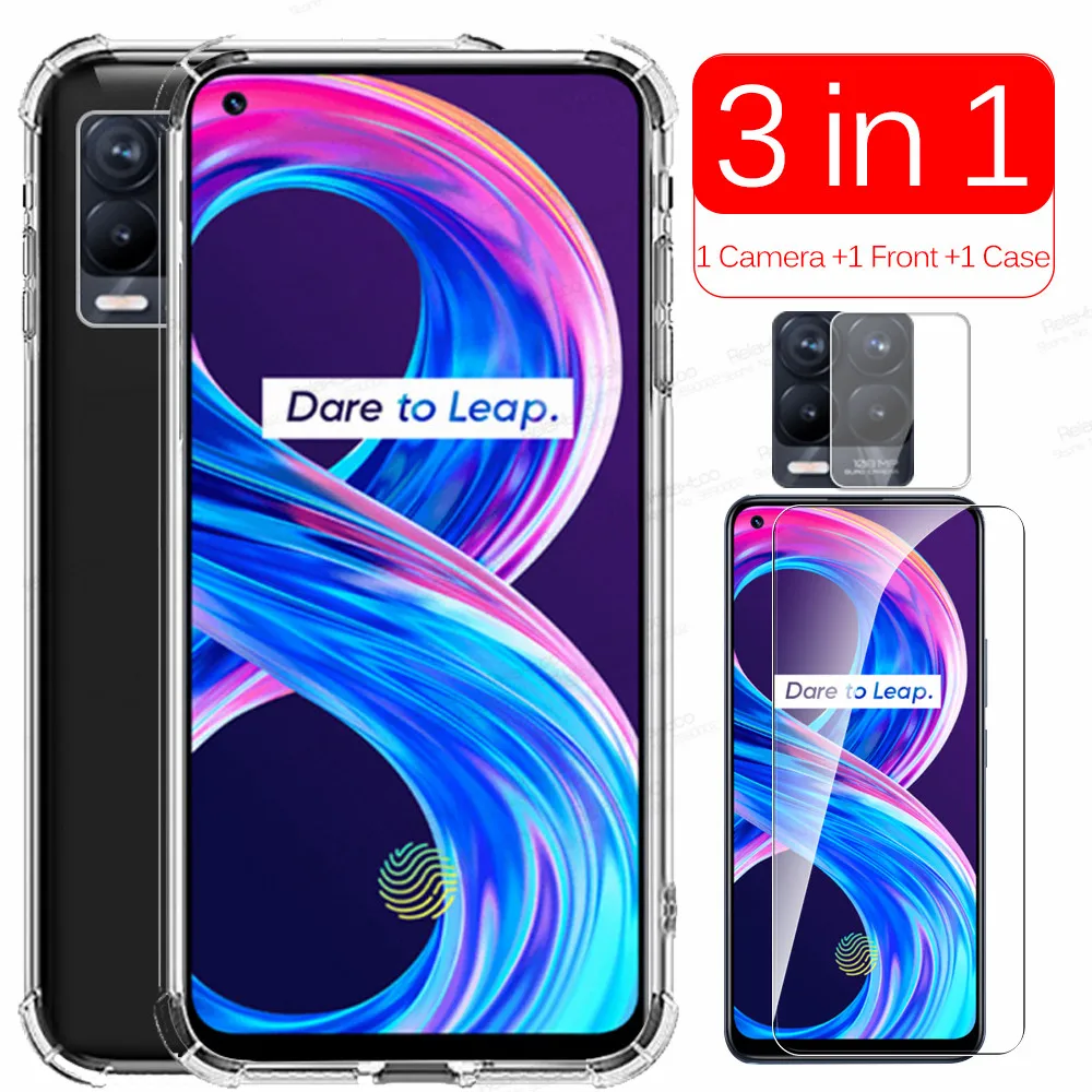 3 в 1 Прозрачный ударопрочный чехол для Oppo Realme 8 Pro камера переднее закаленное стекло Realmi 8Pro прозрачная задняя защитная крышка чехол