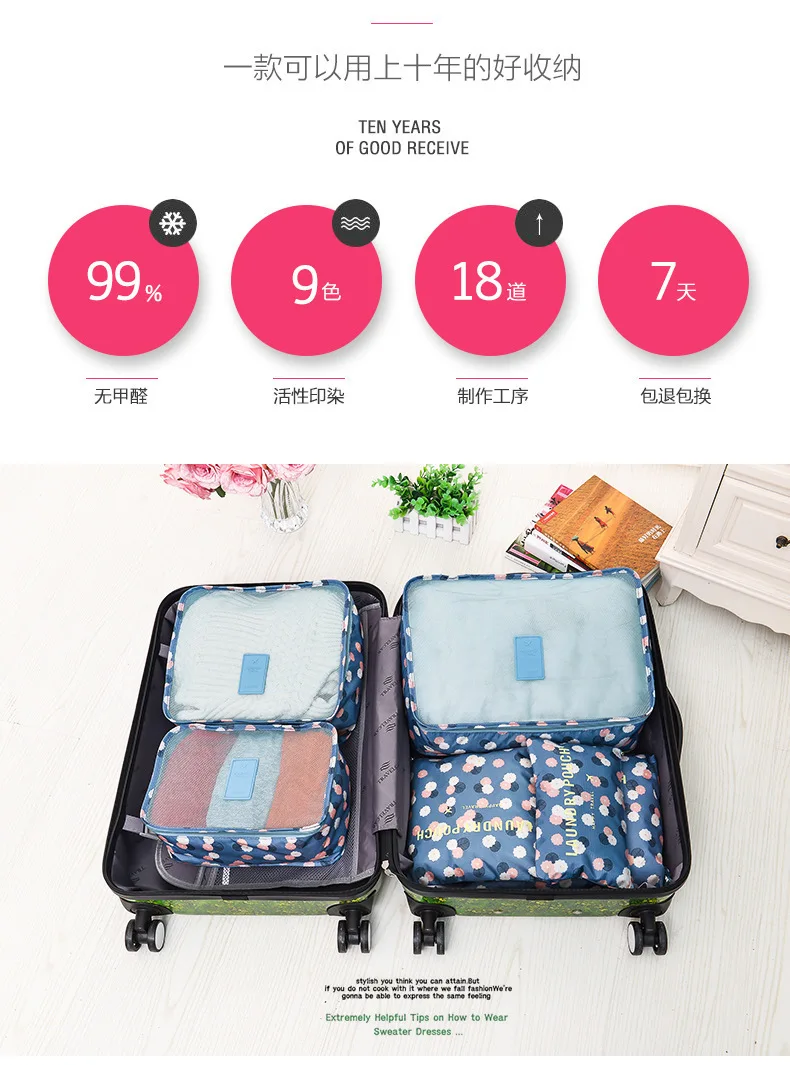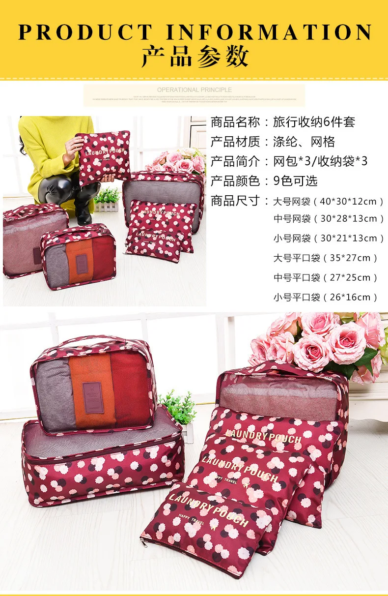 6 шт.Набор для путешествий, сумка для хранения одежды, органайзер для багажа, продажа с завода, набор для хранения одежды для путешествий