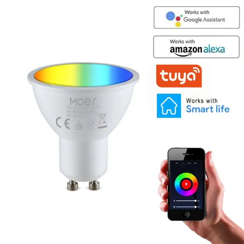 GU10 Точечный светильник Tuya WiFi умный светильник лампа 5 Вт RGB + CW смарт-лампа дистанционного Управление диммируемая цветная (RGB) светильник для Alexa Google Home
