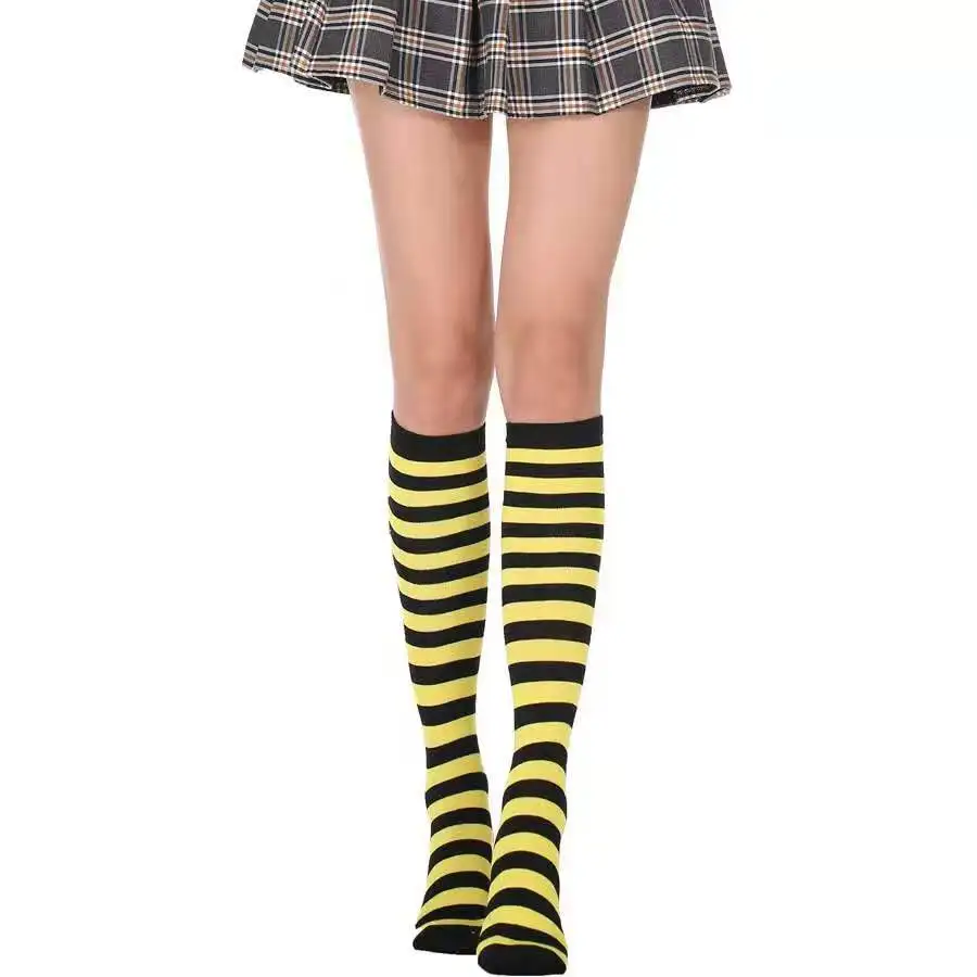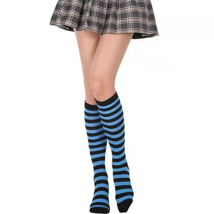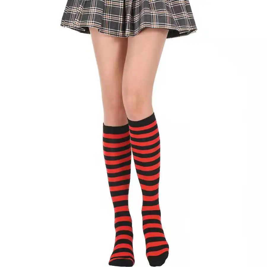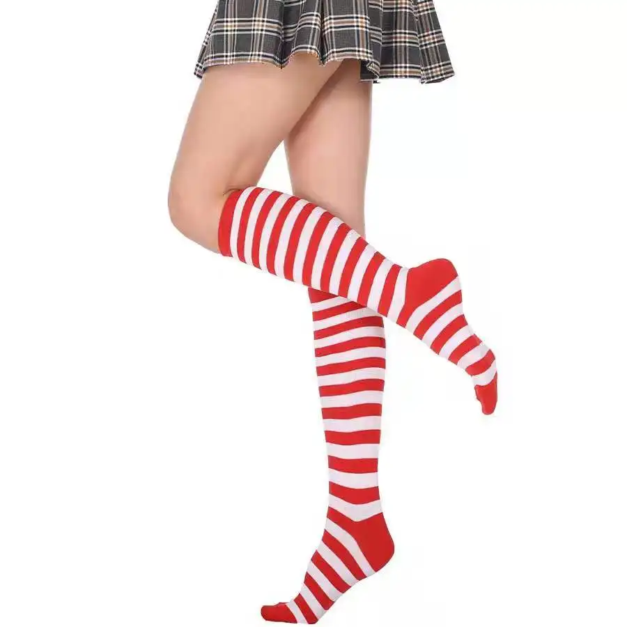 Цветное Полосатое платье забавные женские носки рождественские подарки Пикантные ботфорты высокого нейлон длинные чулки для девочек, милые гетры для девочек