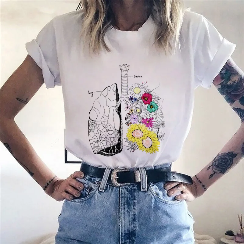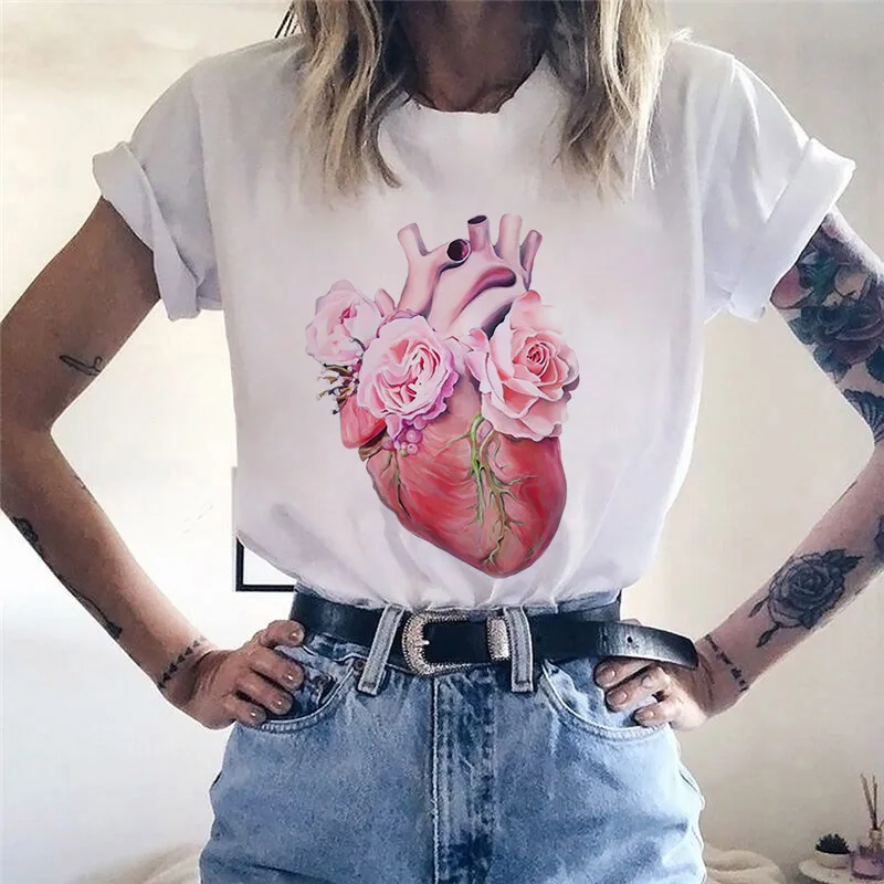 Женская футболка с цветочным принтом, белая футболка с коротким рукавом и графическим принтом в стиле Харадзюку, повседневная Летняя женская футболка