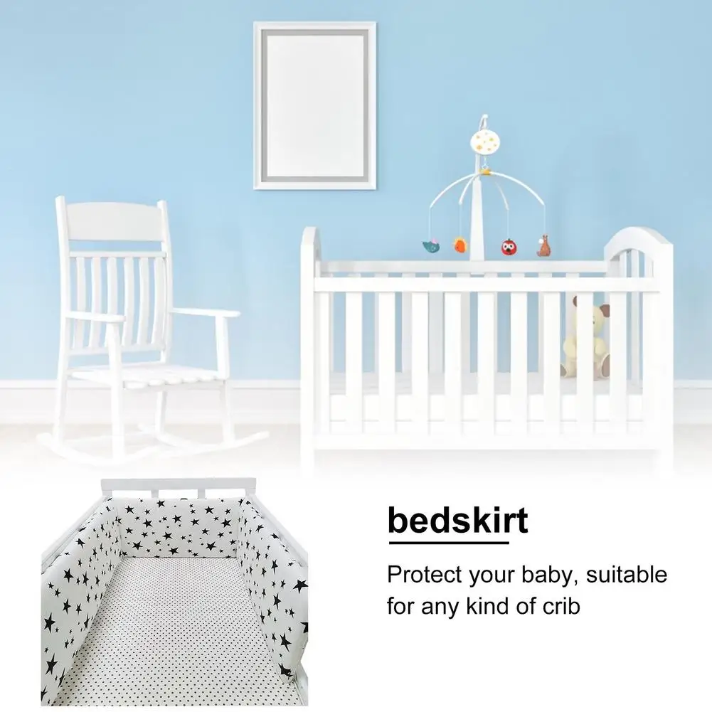 Детская кроватка, забор, высококачественный хлопковый защитный бампер с принтом для кровати, Детская безопасная постельная юбка, подходит для всех детских кроваток