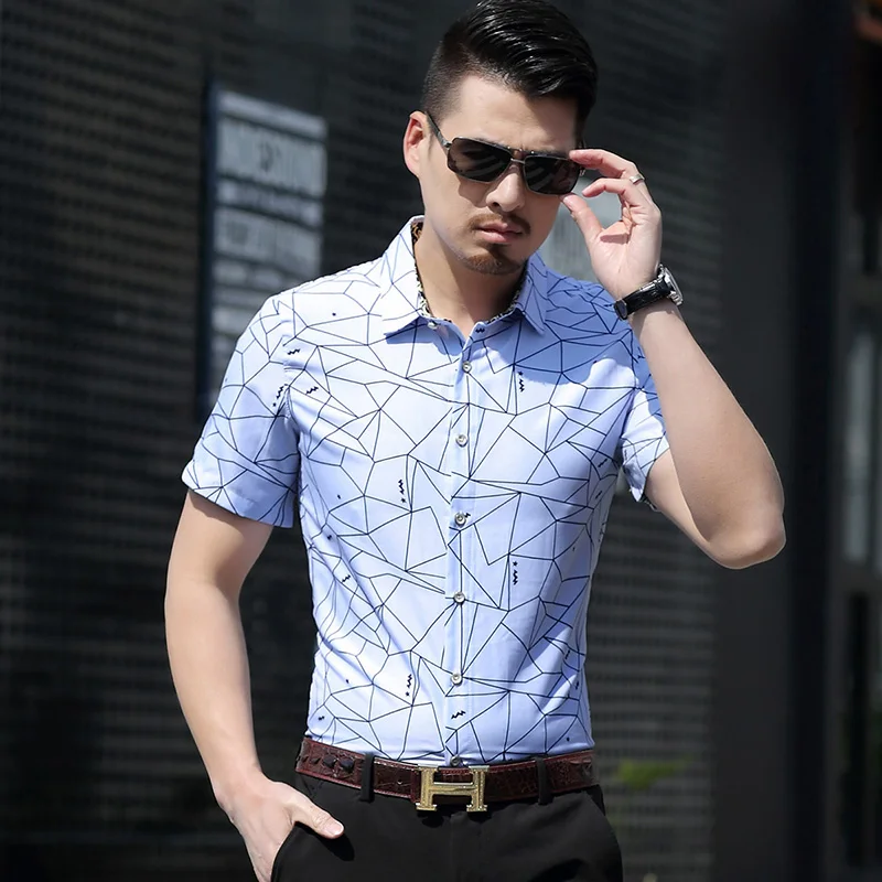 Мужская рубашка с принтом VROKINO, M-7XL рубашка в полоску с коротк...