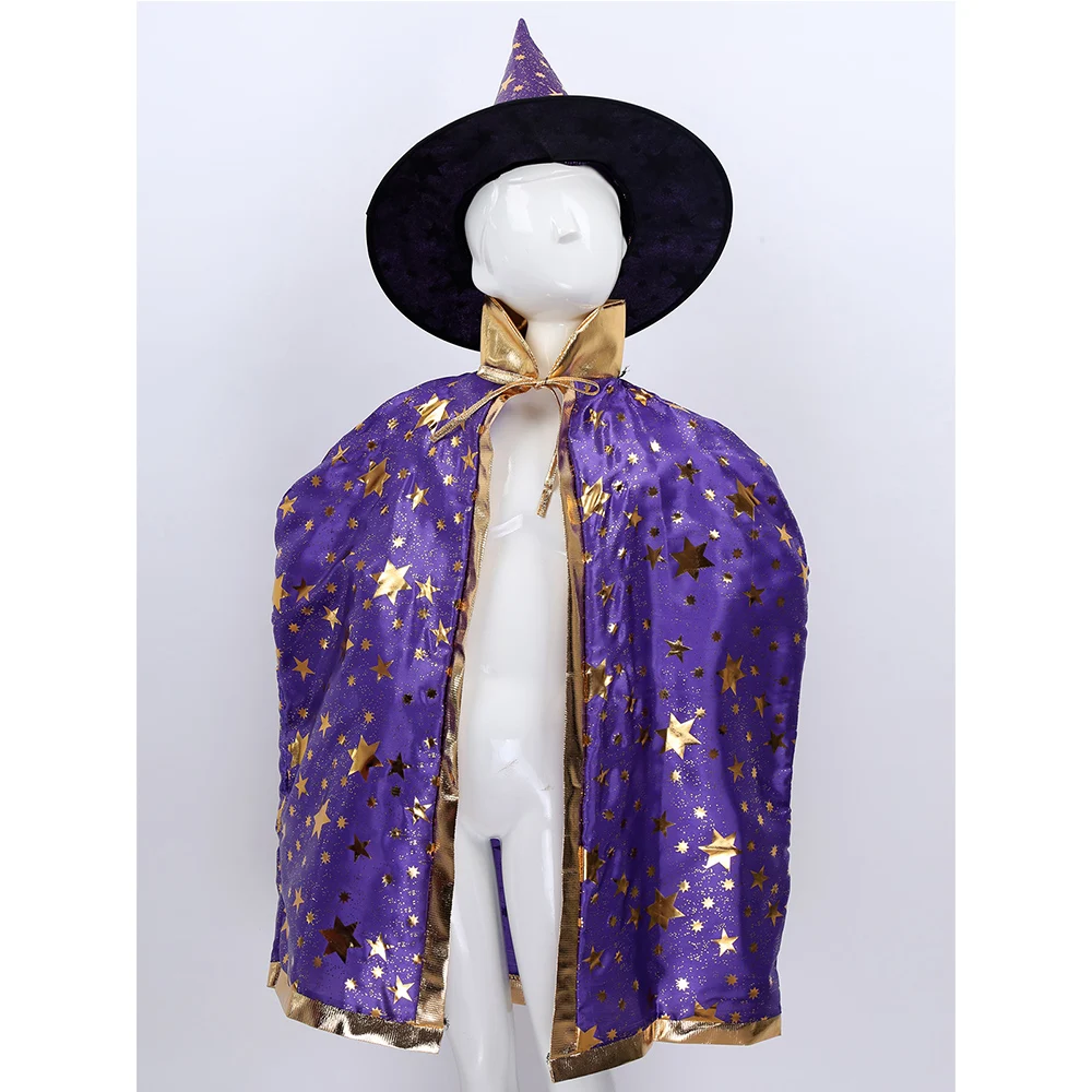 Детский костюм на Хэллоуин, накидка волшебника ведьмы с остроконечной шляпой, аниме, косплей, вечеринка, узор со звездами, для девочек и мальчиков, костюм волшебника