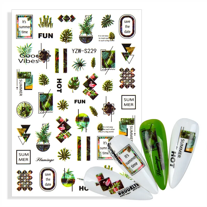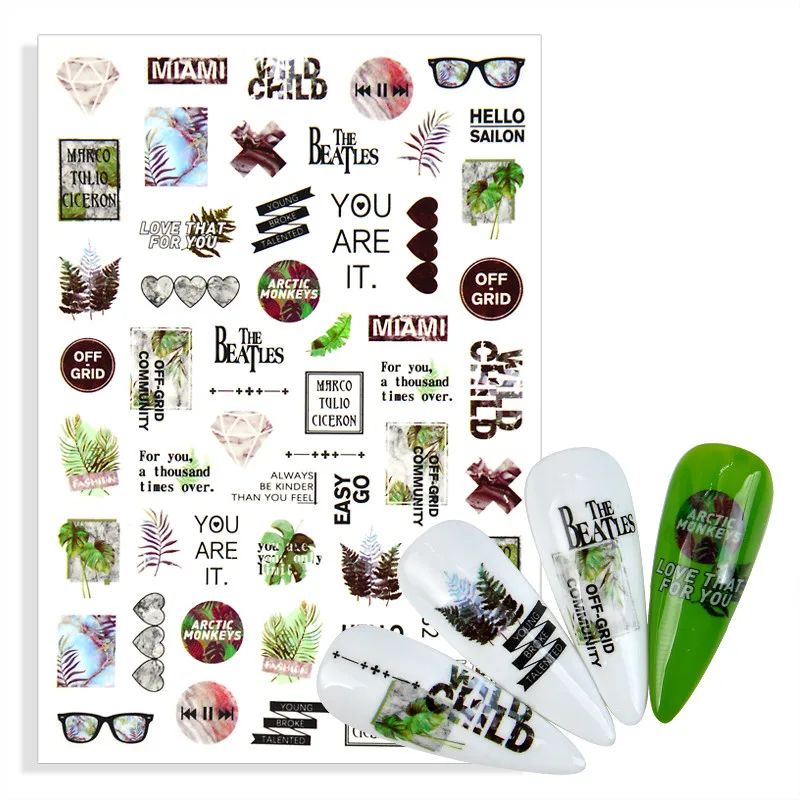 1 лист ABC наклейки с буквами клей исскуство ногати наклейки на английском с изображением зеленых листьев и номер татуировки дизайн ногтей водный ползунки Маникюр обертывания