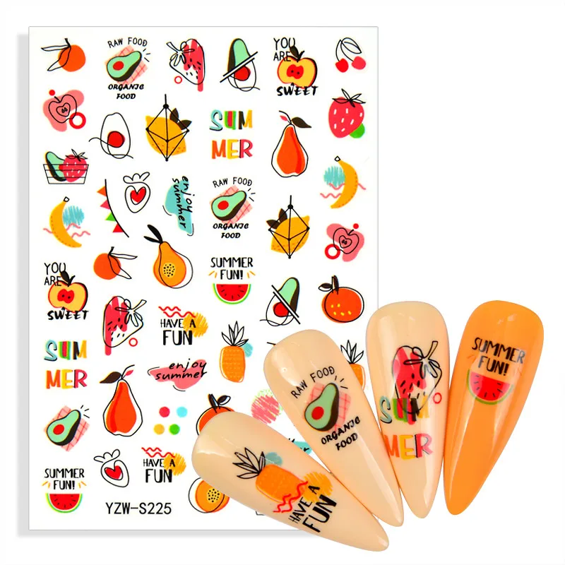 3D Слайдеры для ногтей, Летние фрукты, клубника, груша, яблоко, аво...