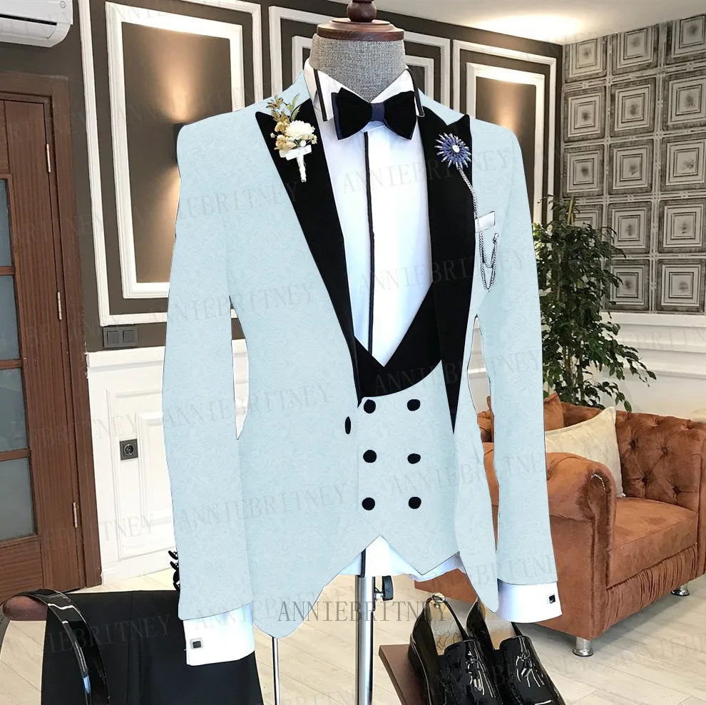 Новый деловой костюм комплект из 3 предметов, красная жаккардовая утолщенная куртка Модный свадебный костюм смокинг пиджак двубортный жилет с брюками, комплект