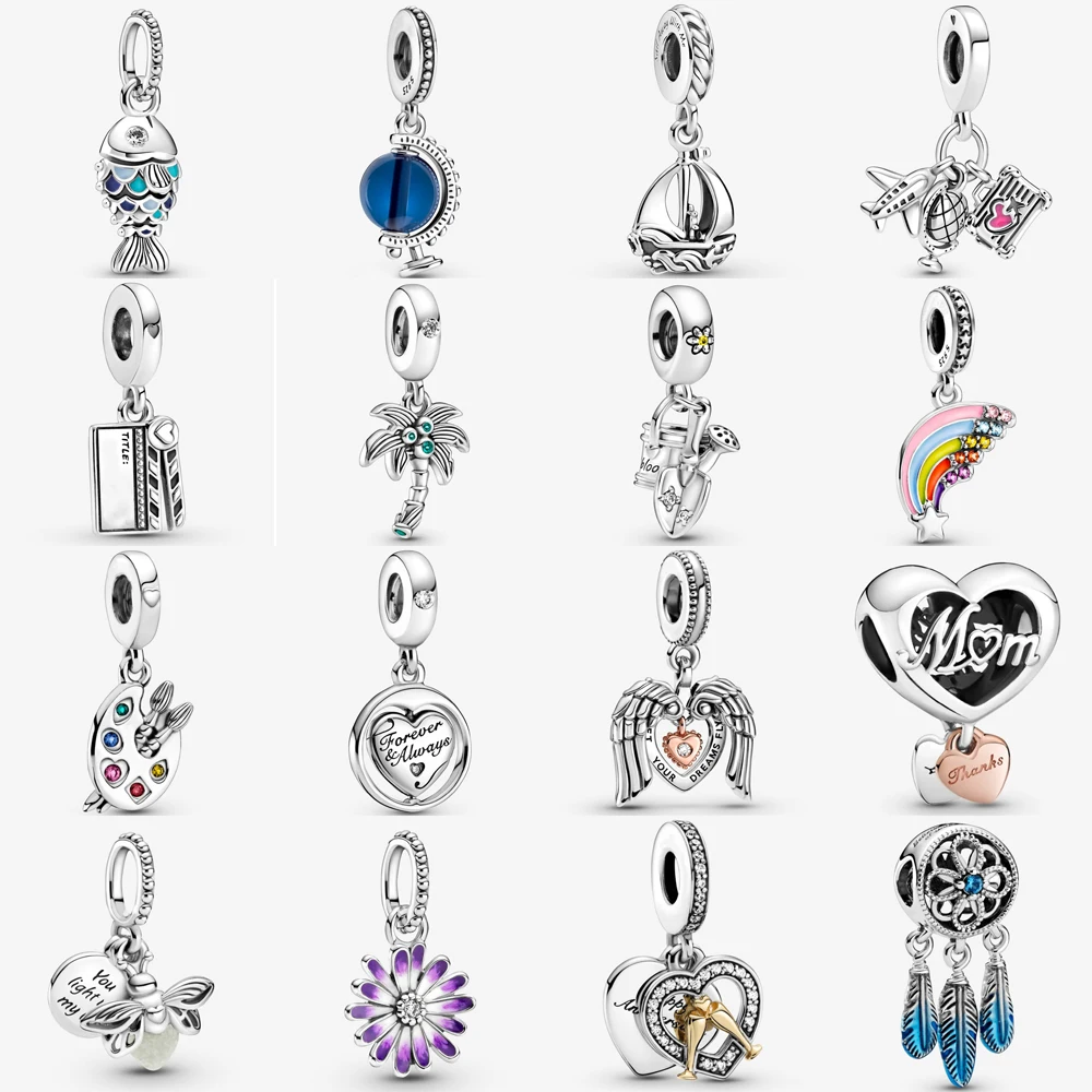 Шарм-подвеска из серебра 2021 пробы с голубым глобусом, пальмой и кокосами, для браслета Пандоры, ожерелья, кулона, самодельные ювелирные изделия, 925