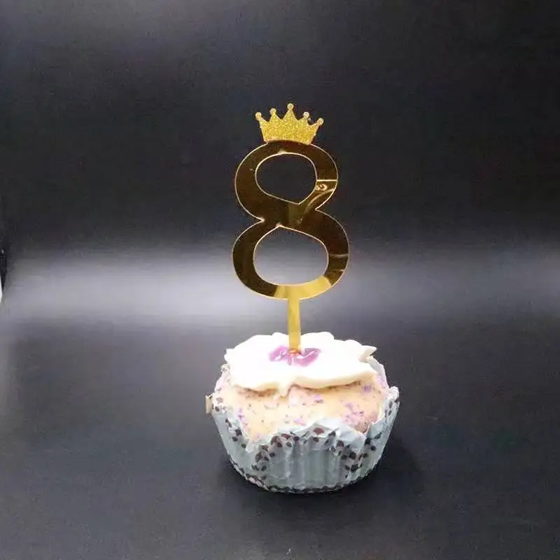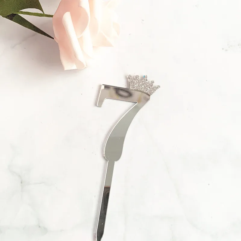 Цифра, топпер для торта, золотая, серебряная, Акриловая Корона, 0-9...