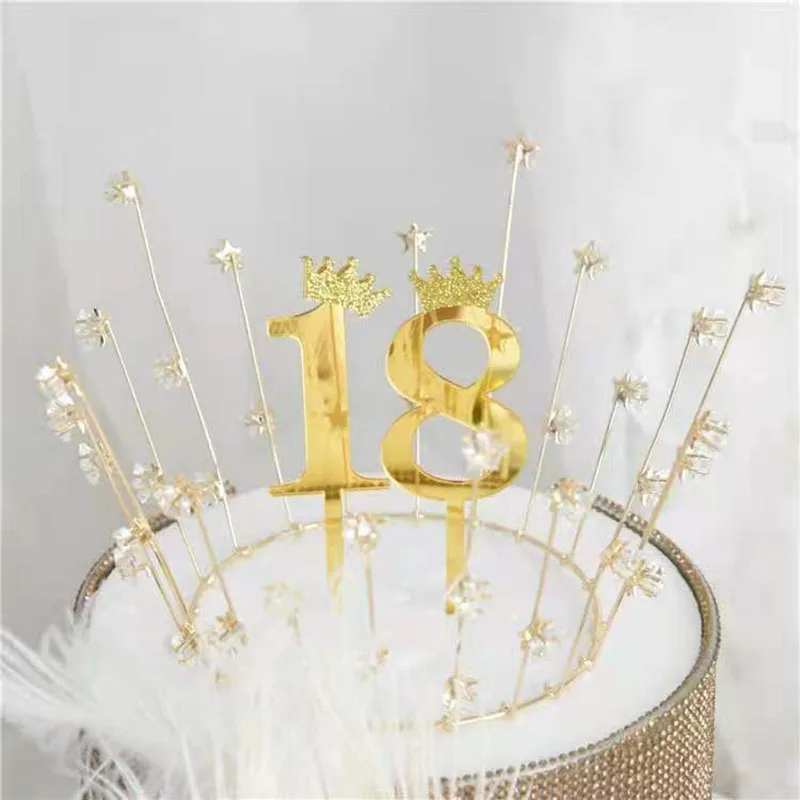 Топпер для торта с цифрами, золотая и Серебряная корона, акриловая ...