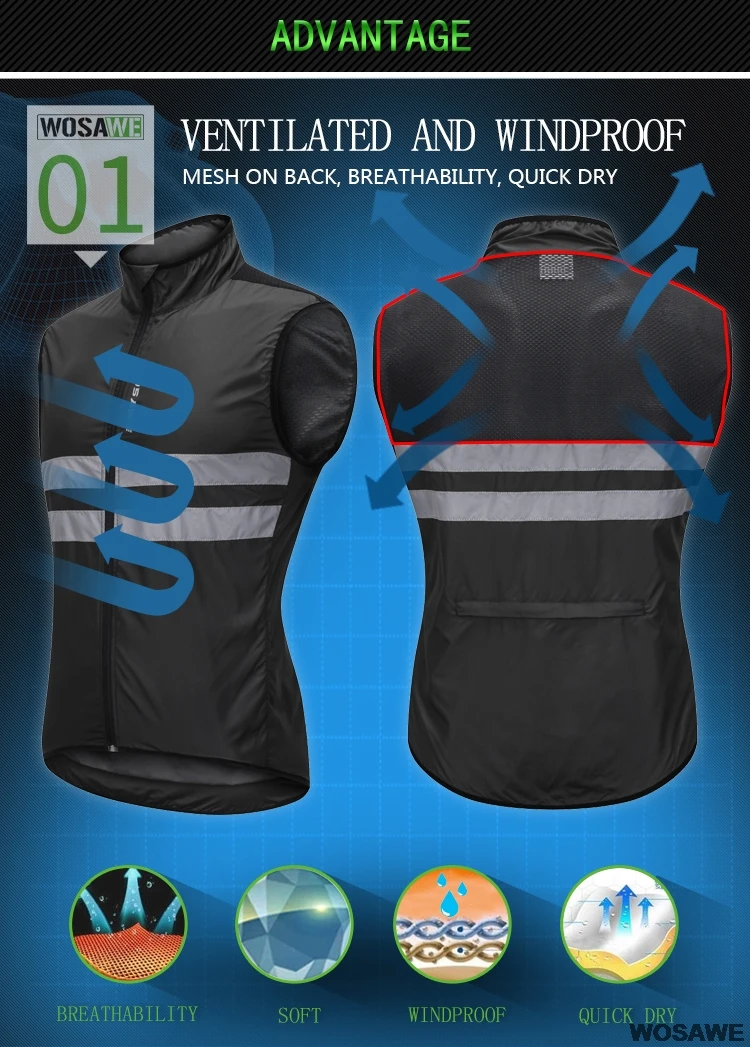 Женский светоотражающий велосипедный жилет WOSAWE, однотонная тканая спортивная одежда, мужская велосипедная ветровка, водоотталкивающая ветрозащитная велосипедная куртка для горных велосипедов