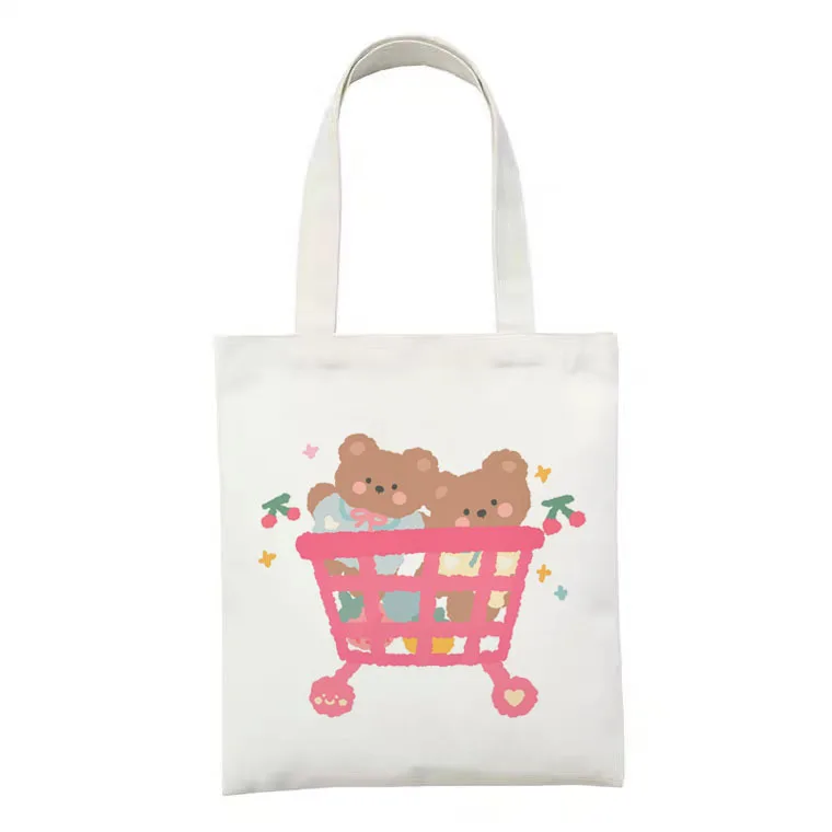 Сумки для покупок для женщин, милый холщовый Повседневный магазин с милым принтом в стиле Харадзюку, универсальная продуктовая Сумочка в Корейском стиле