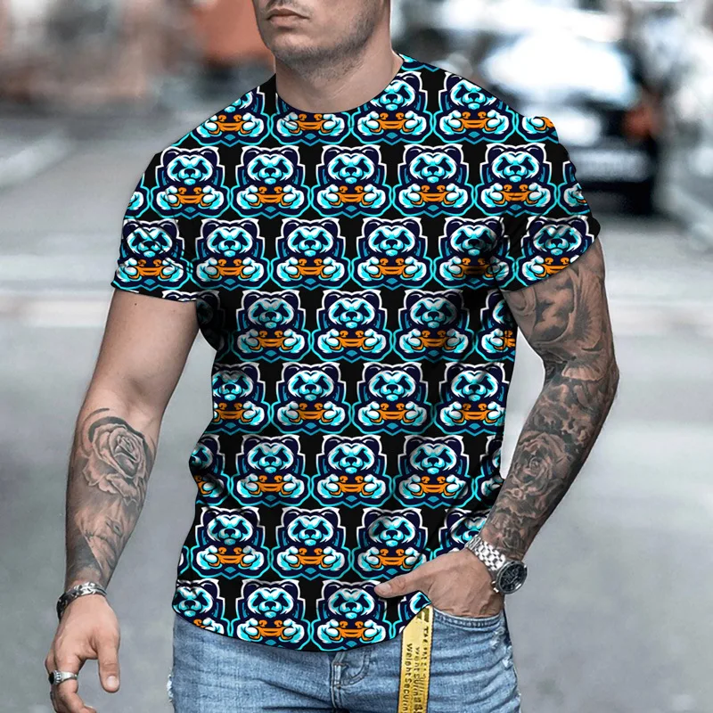 Футболка мужская оверсайз с принтом панды, модная Повседневная руба...