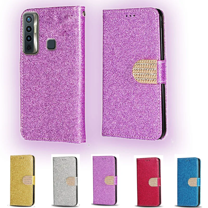 Роскошный Блестящий Алмазный Кожаный чехол-книжка с отделениями для карт чехол для телефона для Tecno Camon 17 чехол-сумка для телефона с разъем карты