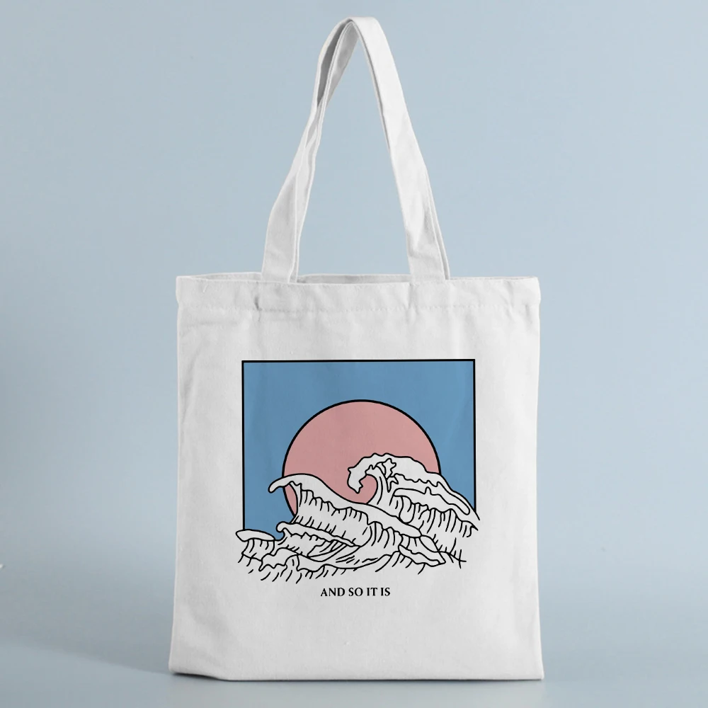 Женская Холщовая Сумка С ВОЛНИСТЫМ принтом, многоразовая Экологически чистая вместительная дамская сумочка на плечо в японском стиле Харадзюку, дорожный тоут
