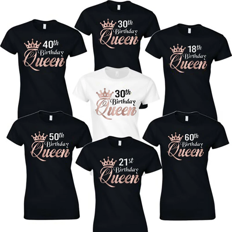 Футболка Huikoo женская, из 100% хлопка, с принтом королевы на 30 дней рождения, 1991, 1981, 1971, металлик, цвета розового золота, на заказ