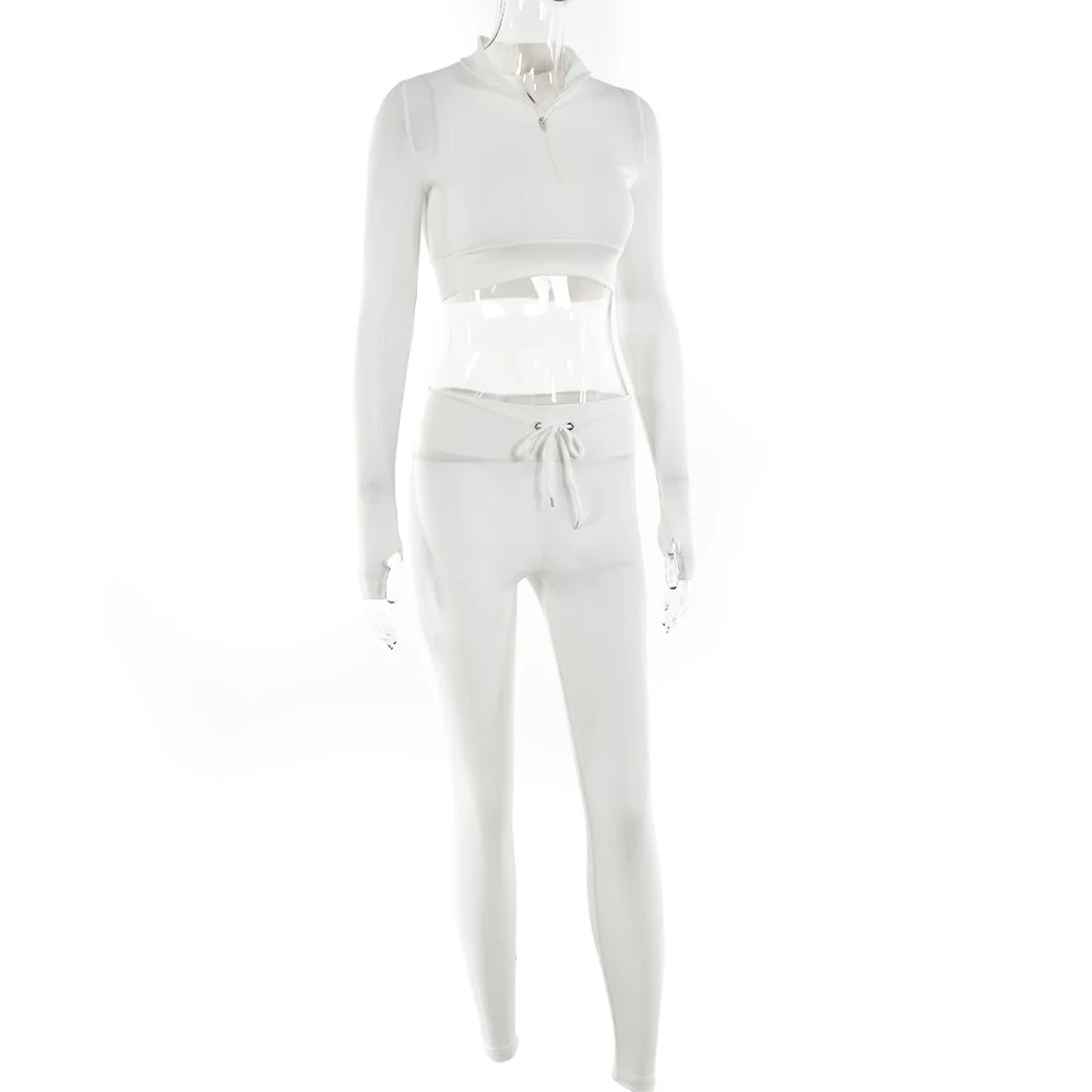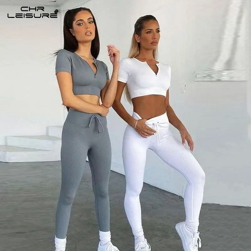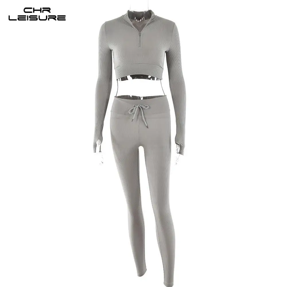 Женский спортивный костюм CHRLEISURE, повседневный спортивный костюм из двух предметов с высокой талией и завязками, на молнии, тренировочная одежда