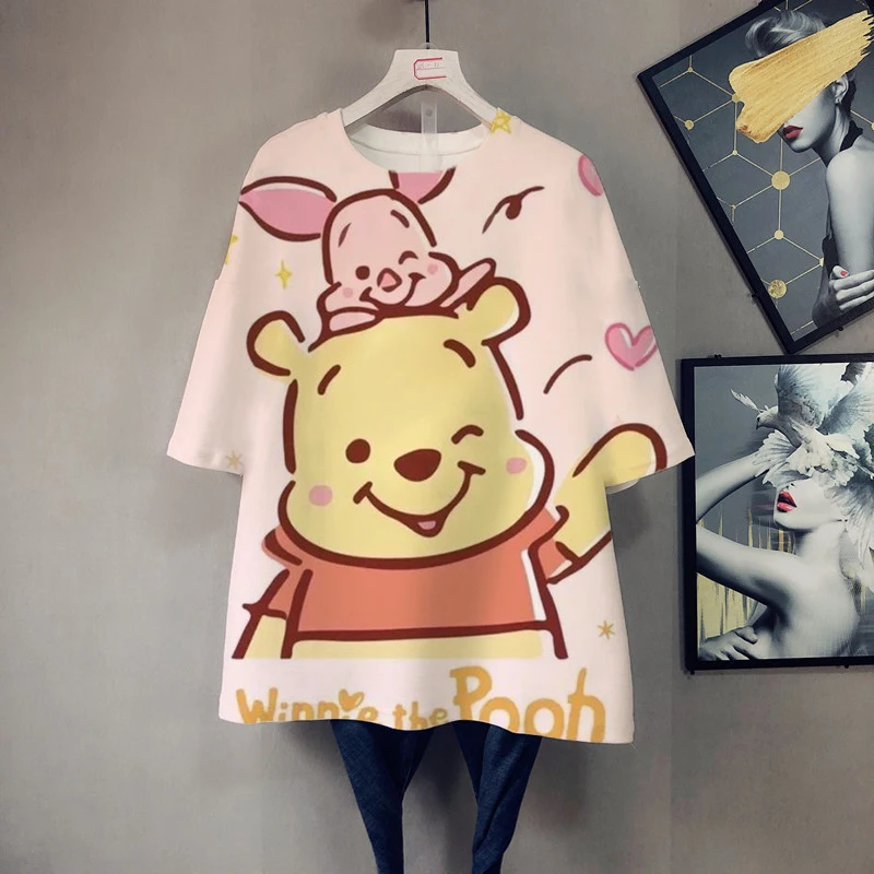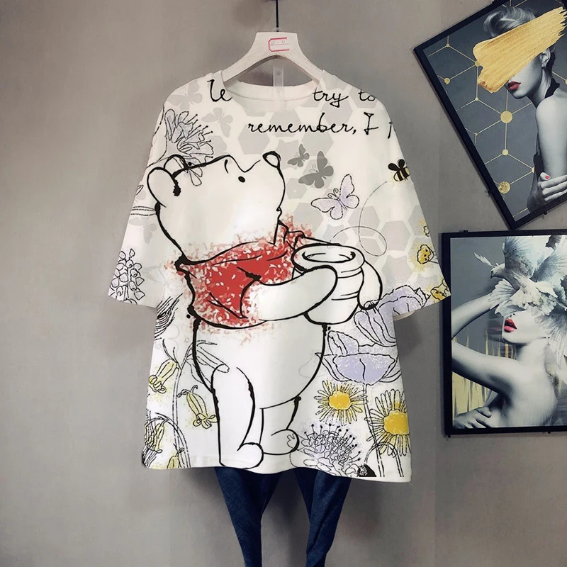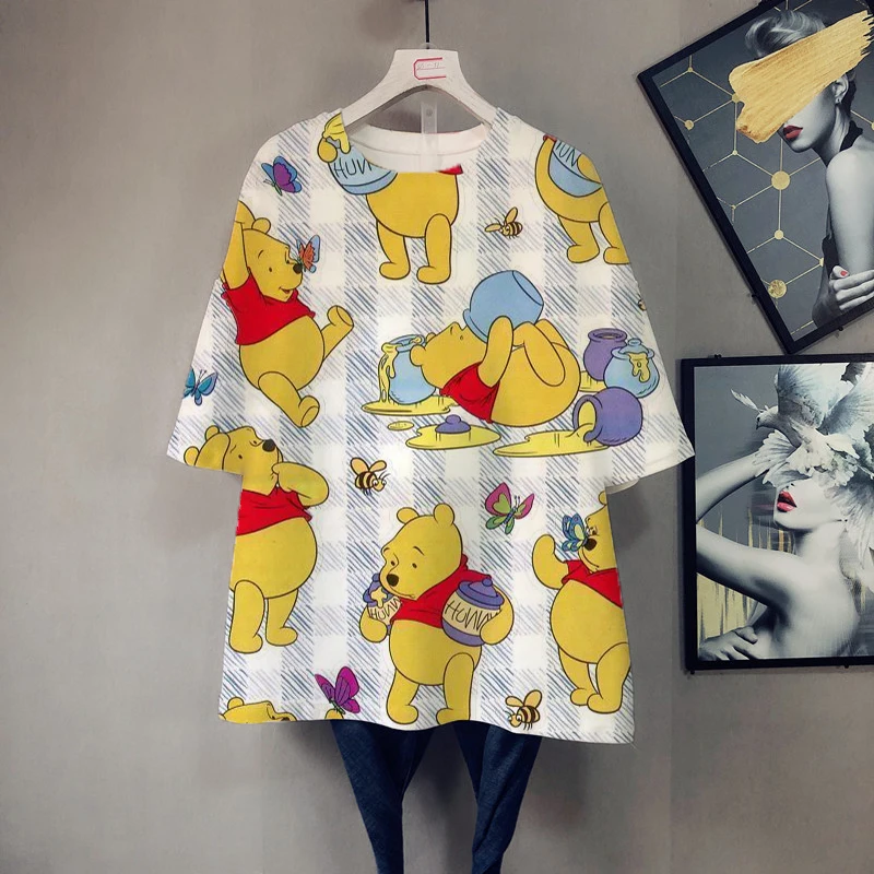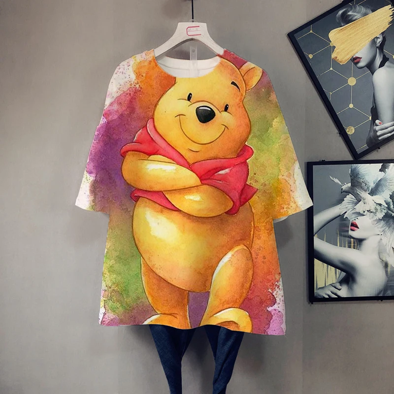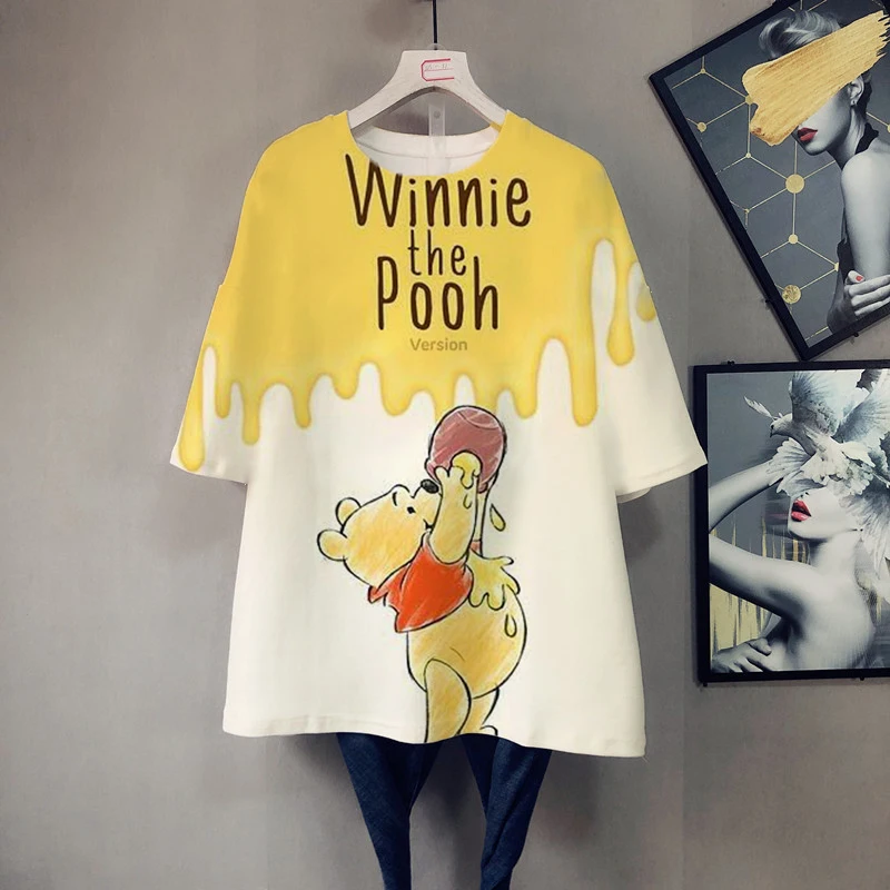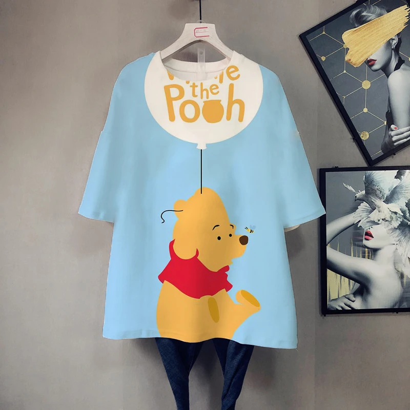 Футболка женская большого размера с мультяшным принтом Винни-Пуха, ...
