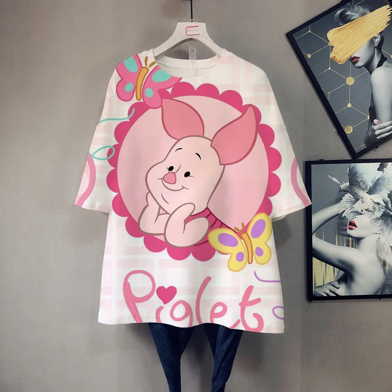 2021 Новая летняя повседневная женская футболка с 3D принтом Винни-Пуха, свиньи, Харадзюку, уличная одежда Ulzzang, футболка с принтом Kawai