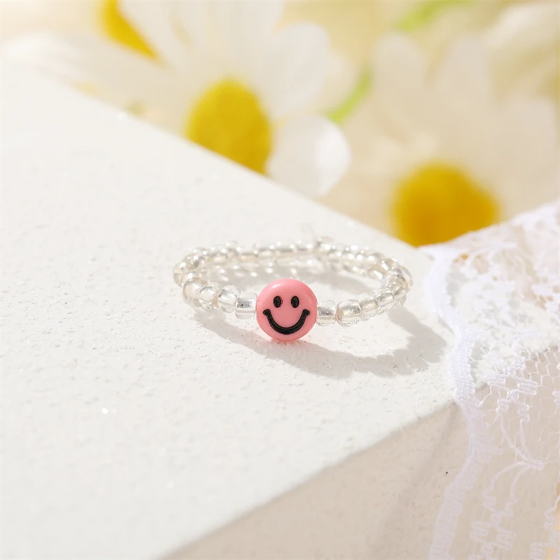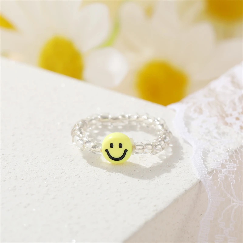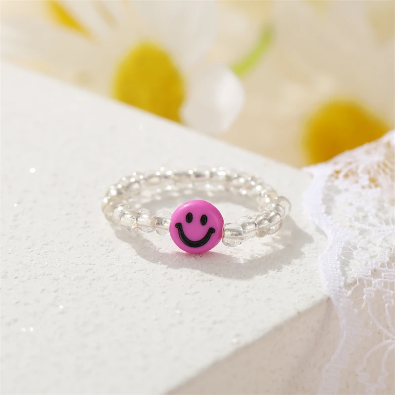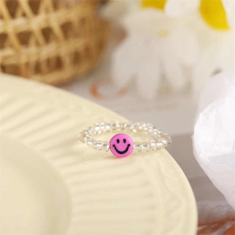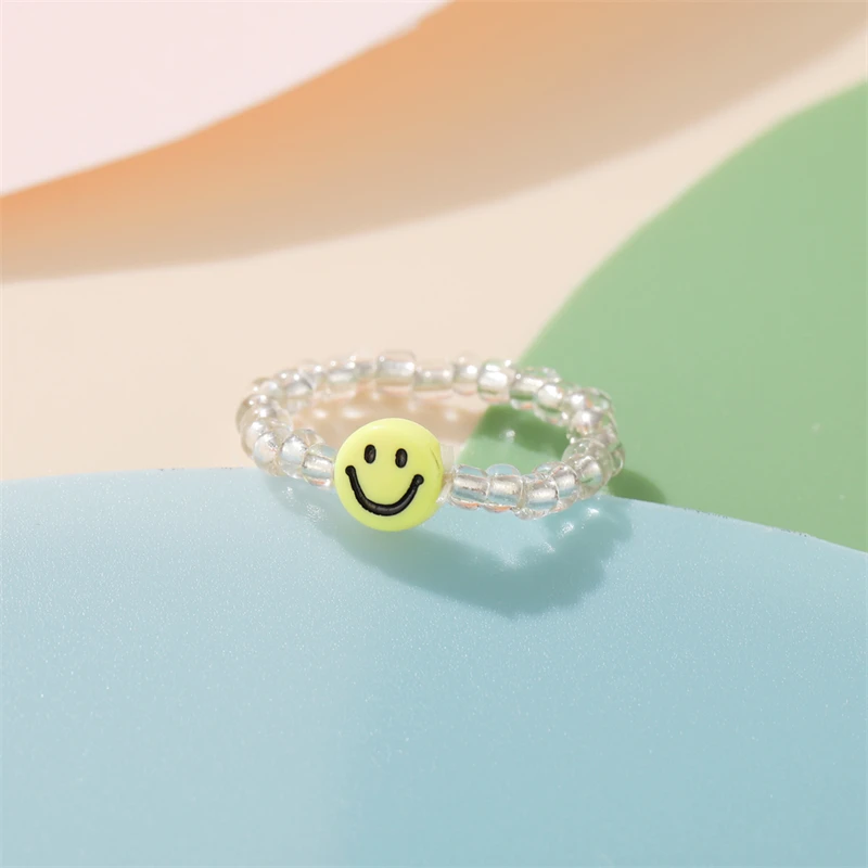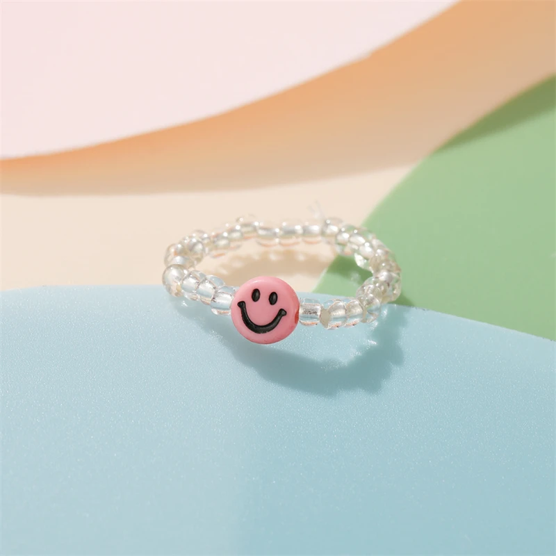 Мода улыбающееся лицо бабочка кольца для мужчин и женщин и регулируемым размером до мизинца, прозрачные эластичные мульти кольца из бисера Вечерние подарки ювелирные изделия