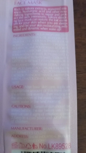 7 шт. LAIKOU Сакура маска для лица Ration упаковки лицевая ночной крем-маска с экстрактом красного женьшеня маска стирка запрещена увлажняющий питательный крем для кожи фирмы Красота уход за лицом