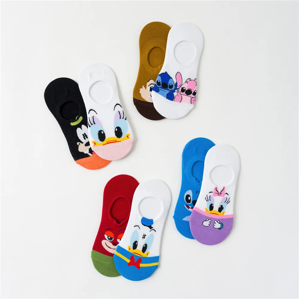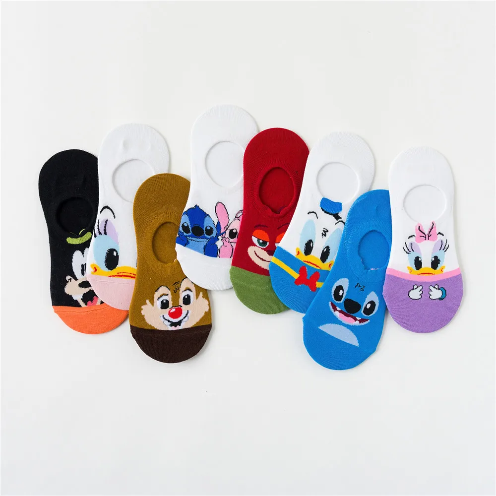 Disney Мультяшные короткие носки-тапочки стежка носки-башмачки с принтом Happy невидимки летней одежды с Микки-Маусом мышь женские хлопковые носки