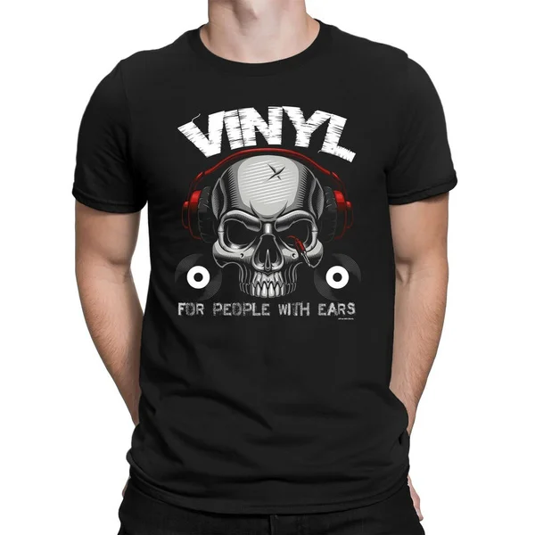 Мужская виниловая футболка для людей с ушами, черепом LP с записью музыкального магазина Death Metal