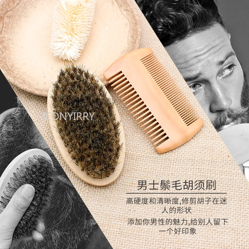 Высокое качество, мягкая щетина кабана, деревянная щетка для бороды, парикмахерский инструмент для бритья, мужской набор расчесок для усов с подарочной сумкой, набор расчесок для волос с бородой