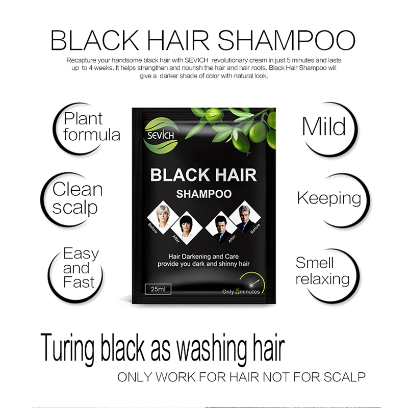 Органический натуральный шампунь для черных волос, делает седые и белые волосы затемняющими и блестящими, шампунь для быстрого макияжа волос