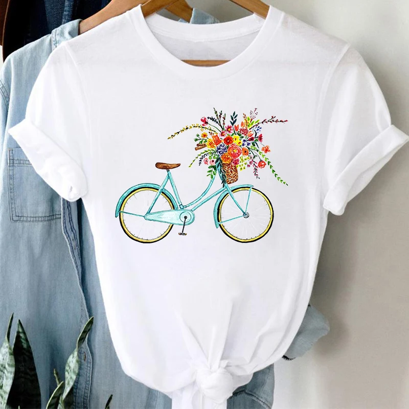Футболка женская с коротким рукавом и круглым вырезом, топ с графич...