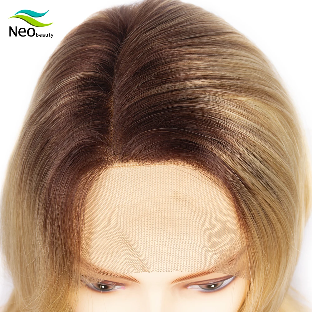 Новый 150% прямые эффектом деграде (переход от темного к синтетические волосы парик для Для женщин Мёд блондинка Синтетические волосы на кружеве волокна волос парики для вечеринок натуральный среднего волосяного покрова Косплэй Вечерние