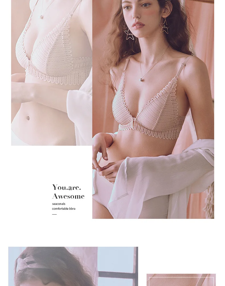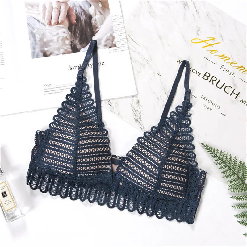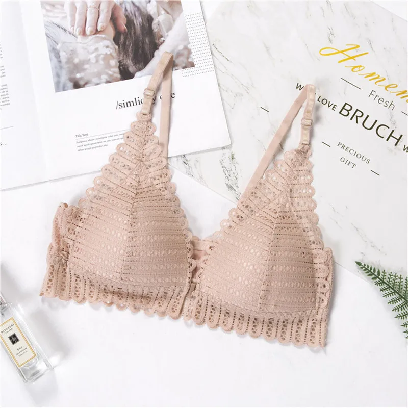 Новинка Нижнее белье с застежкой спереди треугольная чашка французское кружевное тонкое сексуальное нижнее белье без косточек Женский Регулируемый бюстгальтер