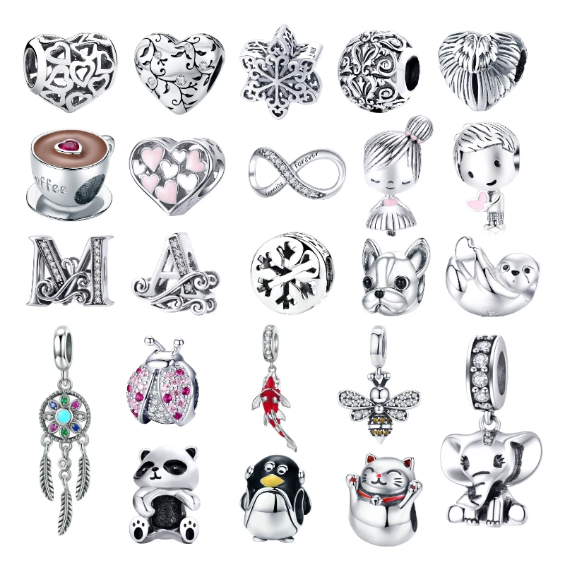Лидер продаж, бусины из сплава BISAER, кофейная чашка, бульдог, мальчик, девочка, пингвин, буквы, шармы, бусины, подходят для оригинальных браслетов, изготовление ювелирных изделий своими руками
