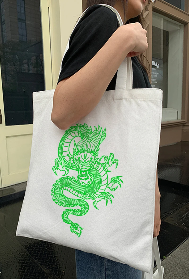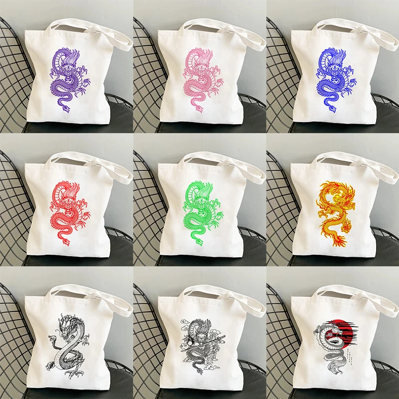 Модная Холщовая Сумка для покупок в китайском стиле с изображением дракона, сумочка-тоут в стиле Харадзюку, Повседневная вместительная сумка на ремне