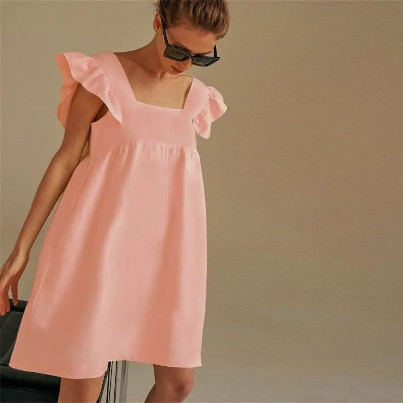 Женское платье без рукавов с оборками, Летнее мини-платье с высокой талией и квадратным вырезом, милое свободное сексуальное платье с открытой спиной, новинка 2021