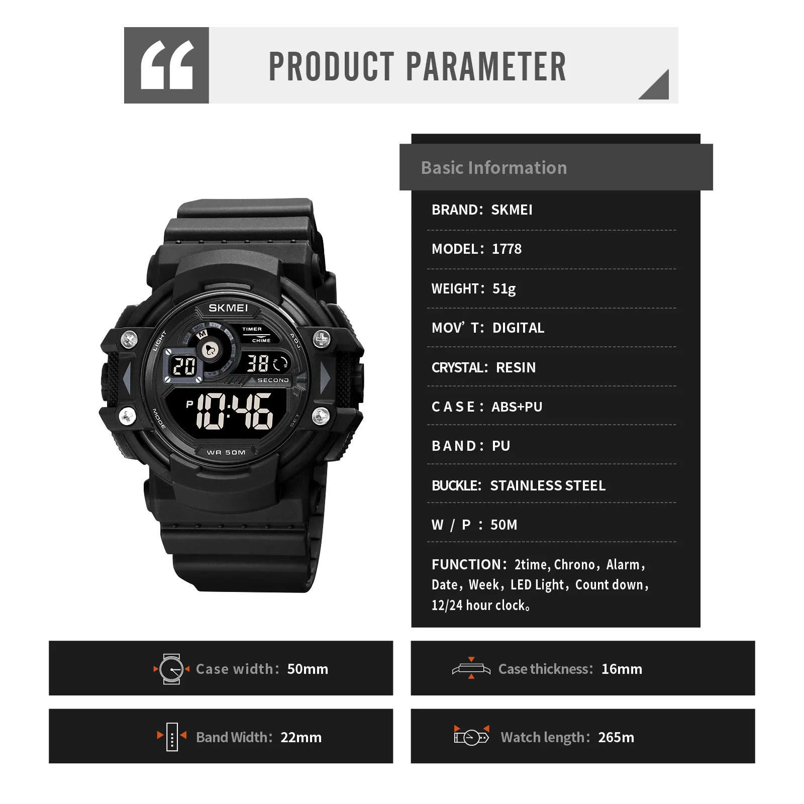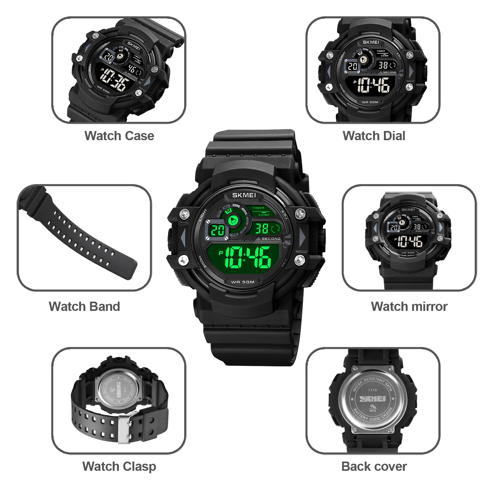 SKMEI светодиодный светильник Цифровые многофункциональные спортивные часы мужские Часы Секундомер водонепроницаемые мужские наручные часы Relogio Masculino 1778