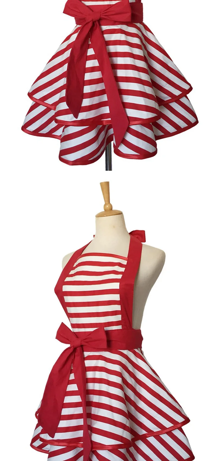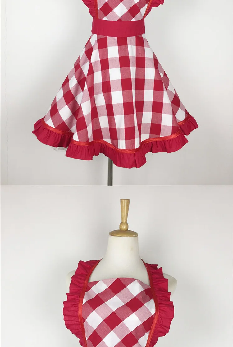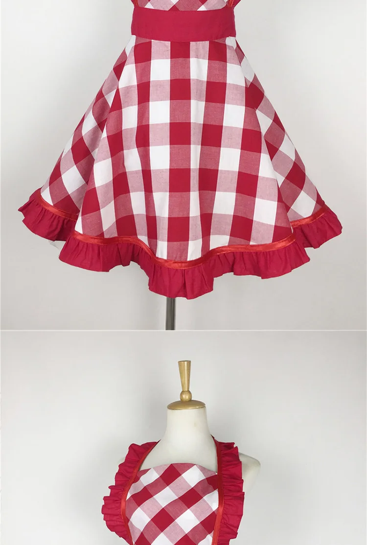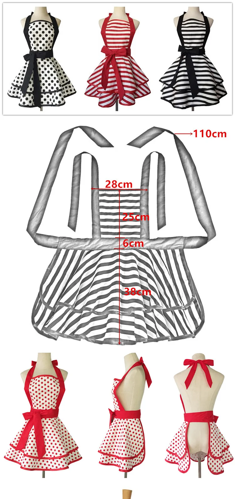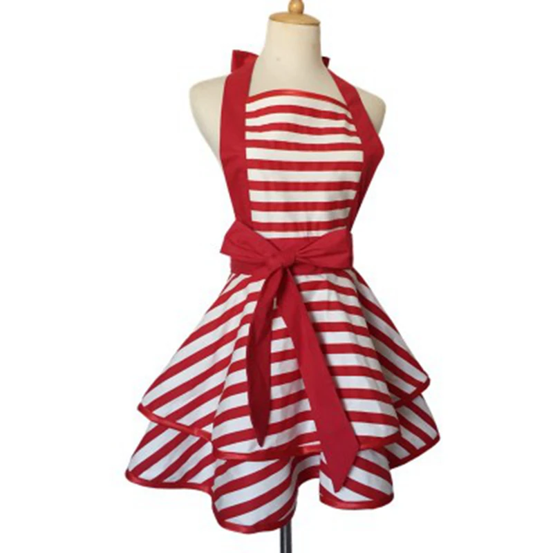 Милое красное Ретро кухонное фартук для женщин и девочек, хлопковое платье в горошек, винтажное платье-фартук на Рождество