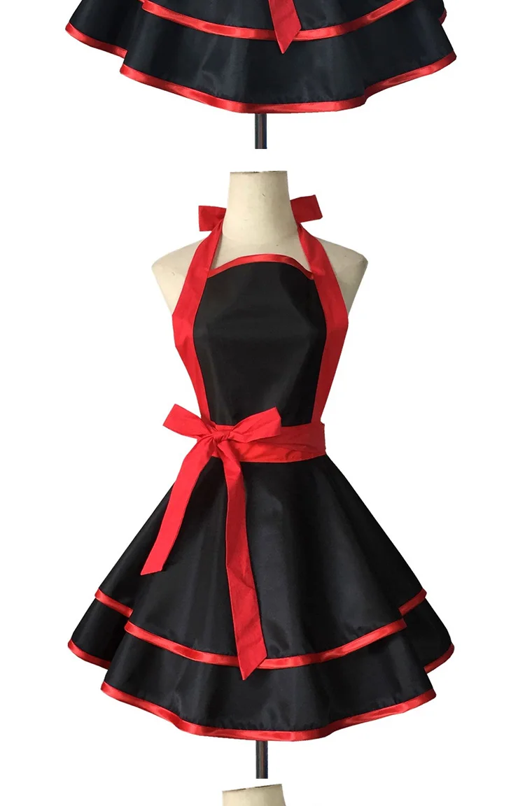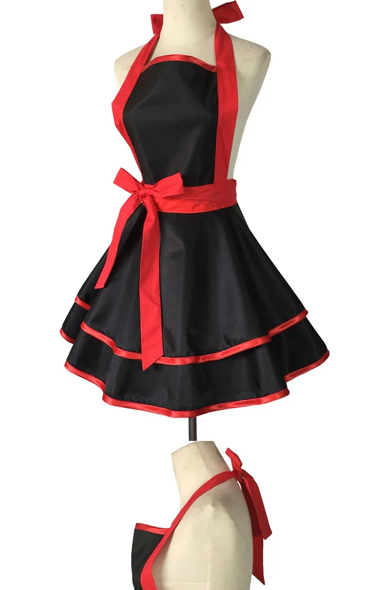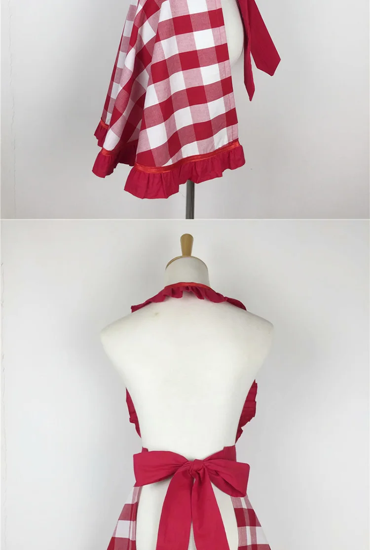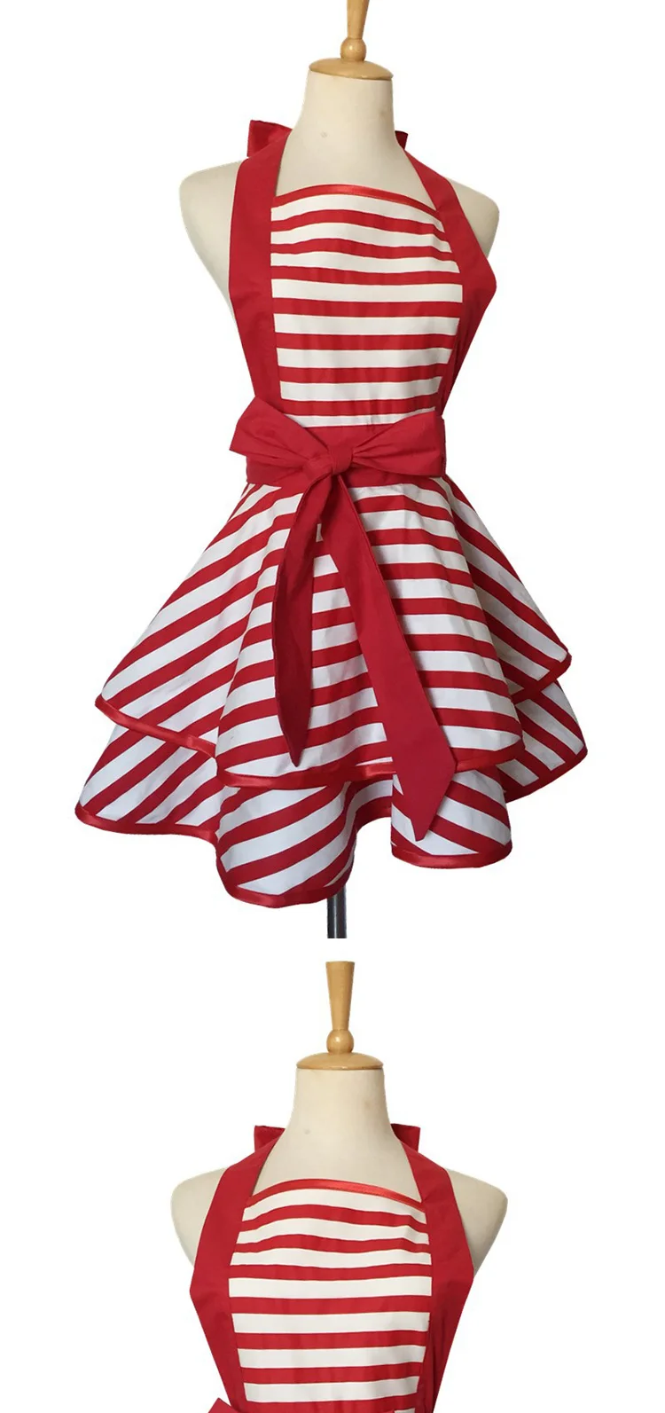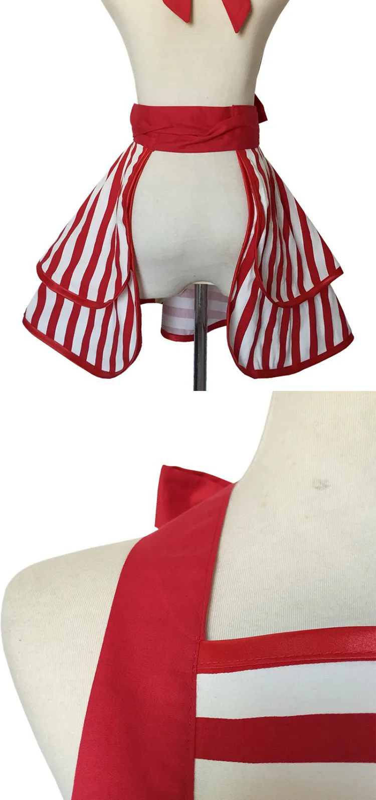 Милое красное Ретро кухонное фартук для женщин и девочек, хлопковое платье в горошек, винтажное платье-фартук на Рождество