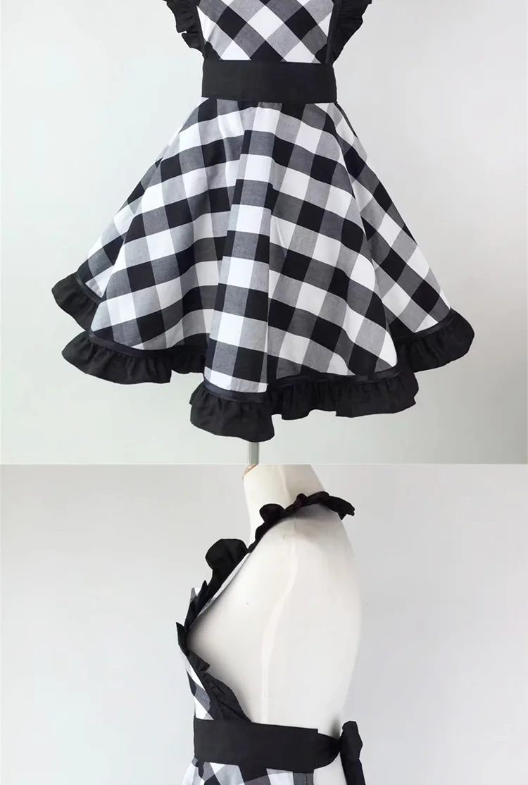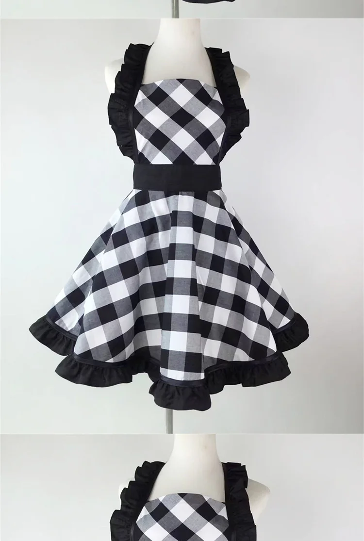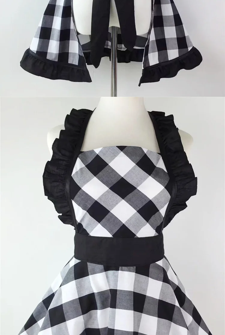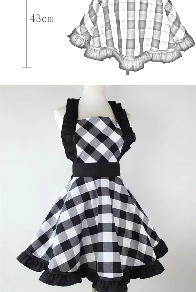 Фартук женский винтажный в горошек, милая Регулируемая кружевная ко...
