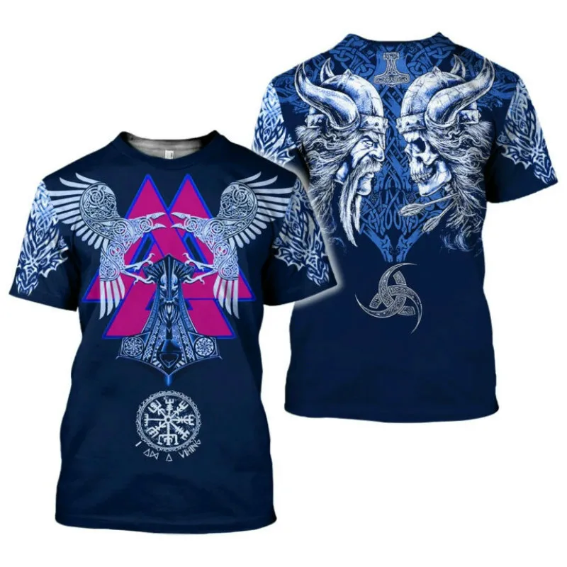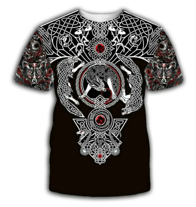 Футболка мужская с 3d принтом татуировок викингов, модная тенниска ...