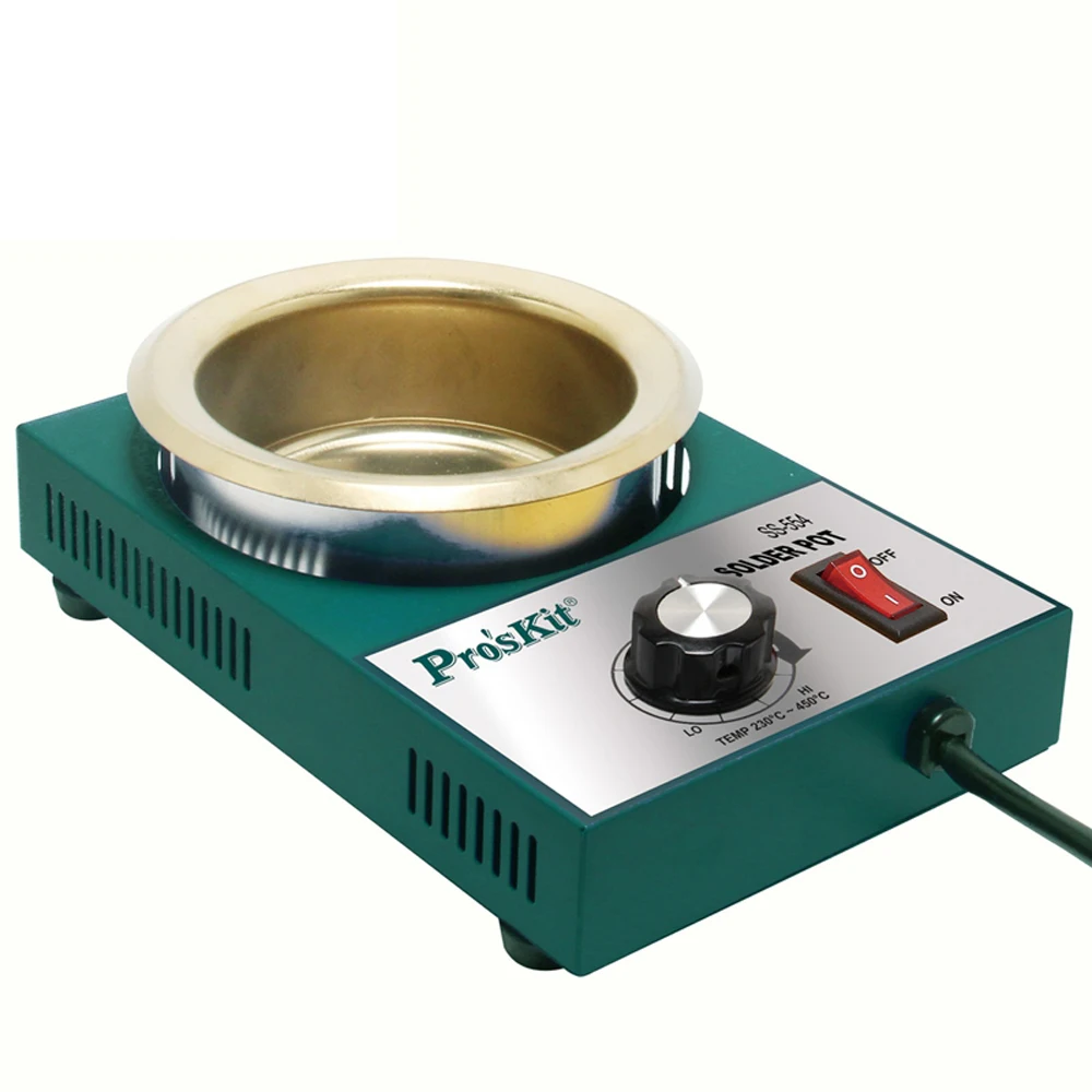 Pro'skit паяльник с температурным контролем Оловянная печь плавления флюса Оловянная банка для распайки плавильной печи инструменты для лужения (только 220 В переменного тока) Особенности:Платы контроля температуры печи и электронные компоненты высокого качества, температура регулируется, стабильная производительность. Оловянные печи изготовлены из высококачественной нержавеющей стали титана, чтобы обеспечить лучшую коррозию и температурную производительность, могут широко использоваться в процессе без свинца и свинца. Использование железной хромированной алюминиевой проволоки нагревательного сердечника и керамической трубки Изоляции свинца, нагрев быстрее и долговечнее. Нержавеющая сталь Отходов олова депозит, для облегчения восстановления отходов оловянной работы. Отличный алюминиевый силикатный изоляционный слой эффективно снижает температуру окружающей среды, улучшает окружающую среду (не-асбест), нетоксичный, экологически чистый. Подходит для олова, пластика, жира и других комнатных температур/низкой температуры легко растворить использование растворенного материала. Технические характеристики: Модель: SS-551HНоминальная мощность: 150 ВтДиапазон температур: 100 °C ~ 600 °CОловянная печь Размер: Φ38x35H (мм)Оловянная печь Материал: нержавеющая сталь материалСкорость плавления олова: около 10 минутКоличество растворенного олова: 0,3 кгНапряжение: 220V ~ 240V 50/60HzРазмер: 150x90x60 (мм)Котла: 5SS-551-POTНагревательное ядро: 5SS-551-H Модель: SS-552HНоминальная мощность: 200 ВтДиапазон температур: 100 °C ~ 550 °CОловянная печь Размер: Φ50x35H (мм)Оловянная печь Материал: нержавеющая сталь материал с обработкой титановым покрытиемСкорость плавления олова: около 10 минутКоличество растворенного олова: 0,5 кгНапряжение: 220V ~ 240V 50/60HzРазмер: 150x90x60 (мм)Котла: 5SS-552-POTНагревательное ядро: 5SS 552-H Модель: SS-553HНоминальная мощность: 250 ВтДиапазон температур: 250 ℃-550 ℃Оловянная печь Размер: Φ80x40H (мм)Оловянная печь Материал: нержавеющая сталь материалСкорость плавления: около 20 минутКоличество плавления: 1,6 кгНапряжение: 220V-240V 50/60HzРазмер (ДхШхВ): 210x140x65mmКотла: 5SS-553-POTНагревательное ядро: 5SS-553-HМодель: SS-554HНоминальная мощность: 300 ВтДиапазон температур: 250 ℃-550 ℃Оловянная печь Размер: Φ100x40H (мм)Оловянная печь Материал: нержавеющая сталь материалСкорость плавления: около 20 минутКоличество плавления: 2,2 кгНапряжение: 220V-240V 50/60HzРазмер (ДхШхВ): 210x140x65mmКотла: 5SS-554-POTНагревательное ядро: 5SS-554-H