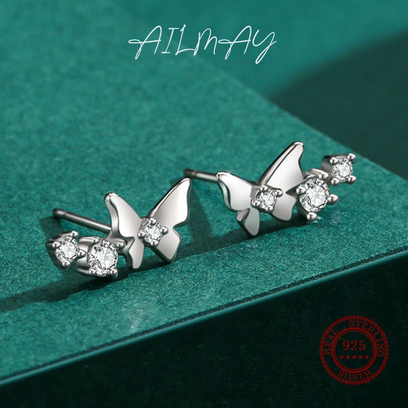 Ailmay Аутентичные 925 Стерлинговое Серебро, кубического циркония тонкая элегантная бабочка животный принт в виде капель с кристаллами в форме для женщин, романтичное свадебное ювелирное изделие