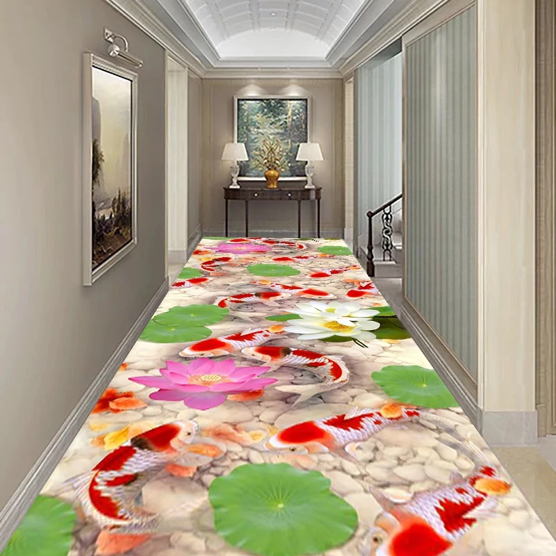 Длинный ковер для дома, для коридора, коридора, в клетку, с цветами...