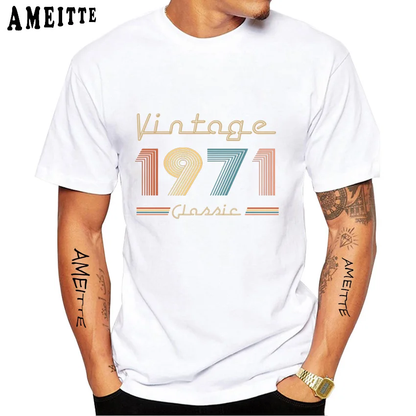 Футболка мужская, с коротким рукавом, в стиле ретро, винтажная, Классическая, ретро, подарок на день рождения, 1971
