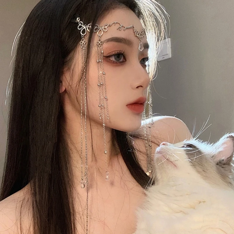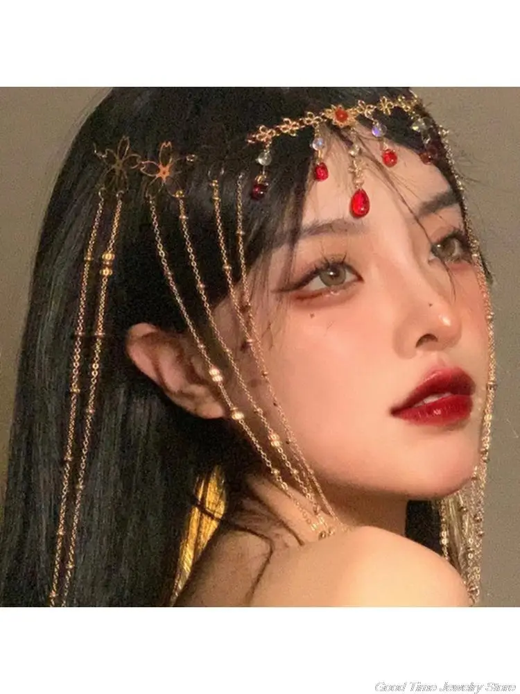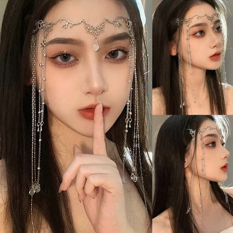 Свадебные украшения головной убор металла рога с украшением в виде кристаллов диадема в форме капли цепочка на голову стразы, длинное пальто с кисточками для лба и повязка на голову