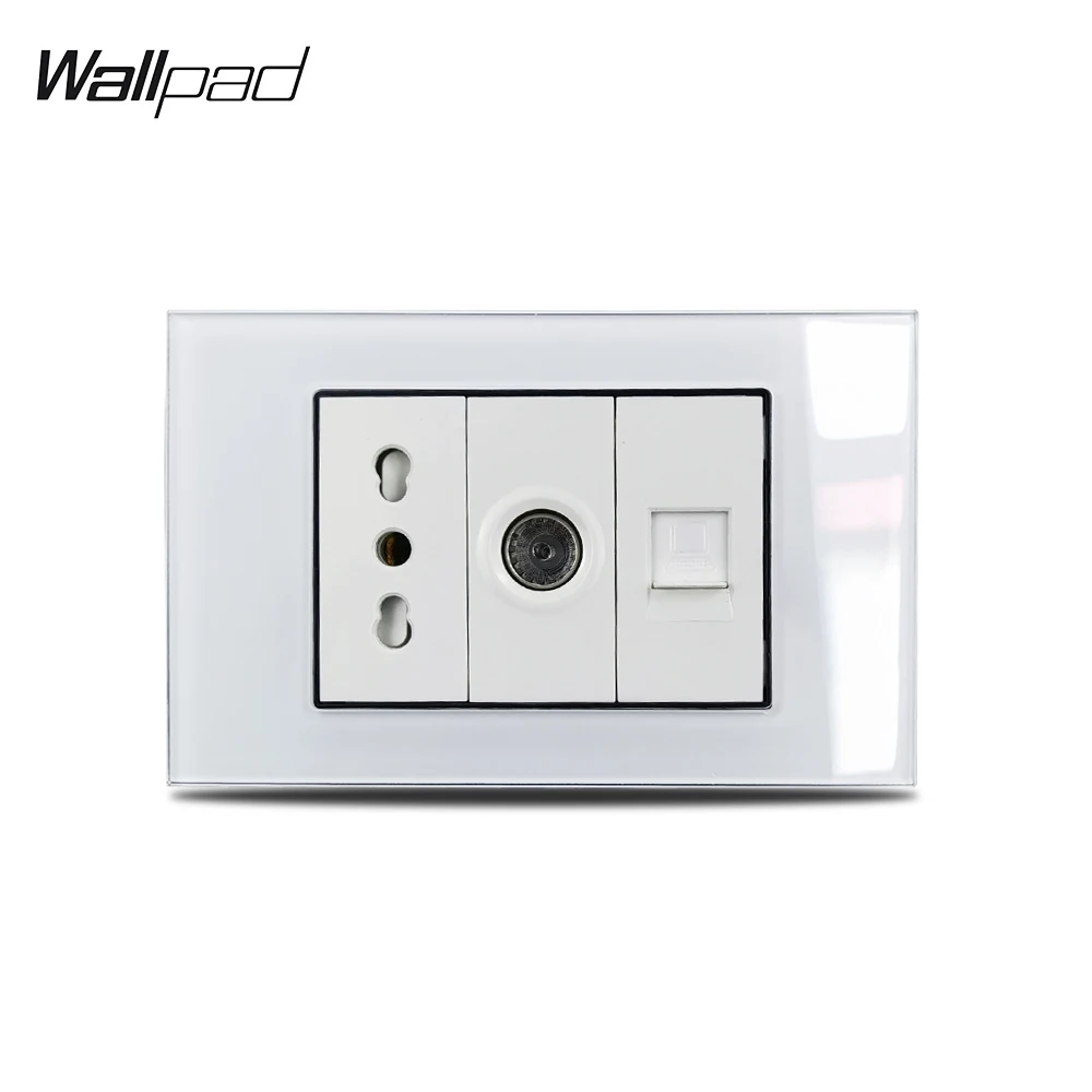 118*75 мм 3 итальянские розетки Wallpad L3 белая стеклянная панель ...
