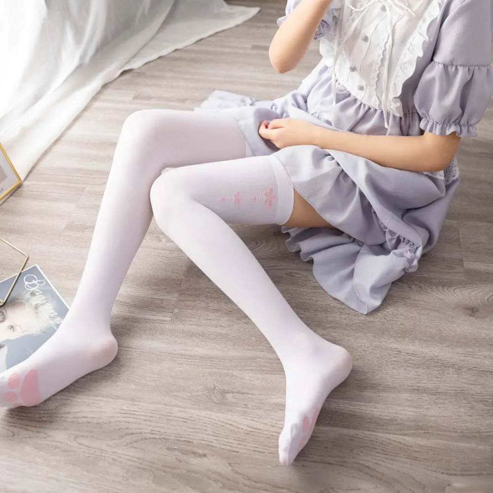 Бархатные чулки Medias с милым принтом кошачьей лапы, чулки до бедра, чулочно-носочные изделия для косплея аниме для женщин и девушек, милые сексуальные колготки