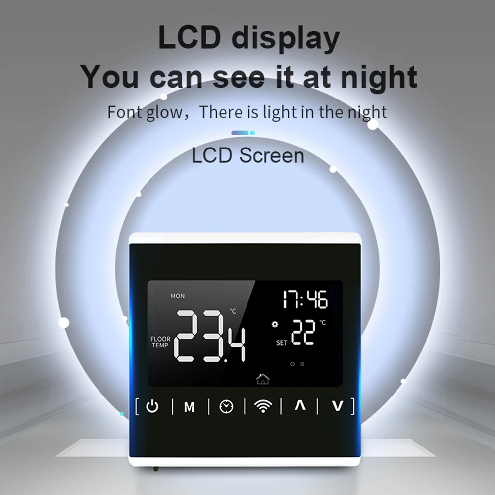 Умный термостат для теплого пола Tuya, Wi-Fi Электрический термостат с сенсорным ЖК-экраном и пультом дистанционного управления температурой воды