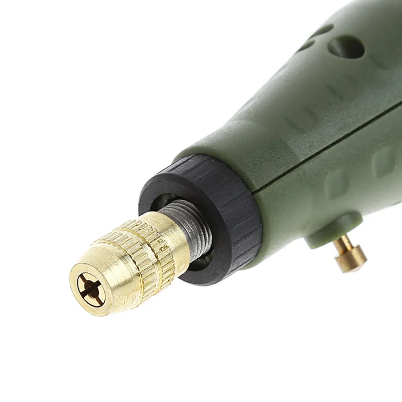 Электрическая дрель очень миниатюрная и весит светильник, который подходит для переноски. Оснащенный необходимыми аксессуарами, он позволяет сверлить, резать, полировать, резьбы по дереву, металлу, пластику и другим материалам.